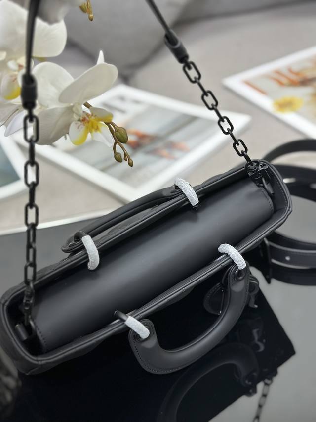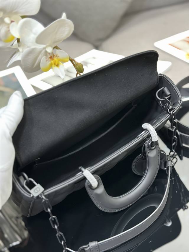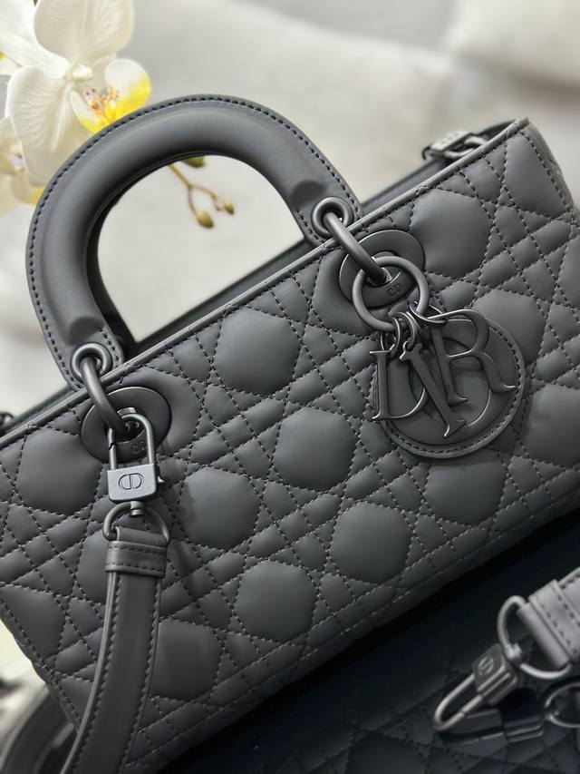 Lady D-Joy Medium Checkered Matte Handbag embodies the minimalist aesthetic of the Lady Dior collection, showcasing Dior's profound insight into elegance and beauty. Crafted from matte black calfskin, it features striking quilted details with classic cannage stitching, revealing exquisite craftsmanship. A tonal DIOR charm adds a touch of elegance. The medium size comes with a detachable chain shoulder strap and an adjustable, detachable leather shoulder strap, allowing for hand-carrying, shoulder-carrying, or crossbody wear, making it ideal for everyday styling. Dimensions: 26 x 13.5 x 5 cm, Model: M0540, Exclusive product photos, brand new gift box, nationwide price uniformly 80 RMB.