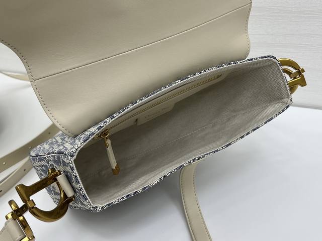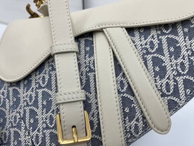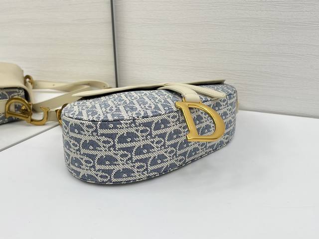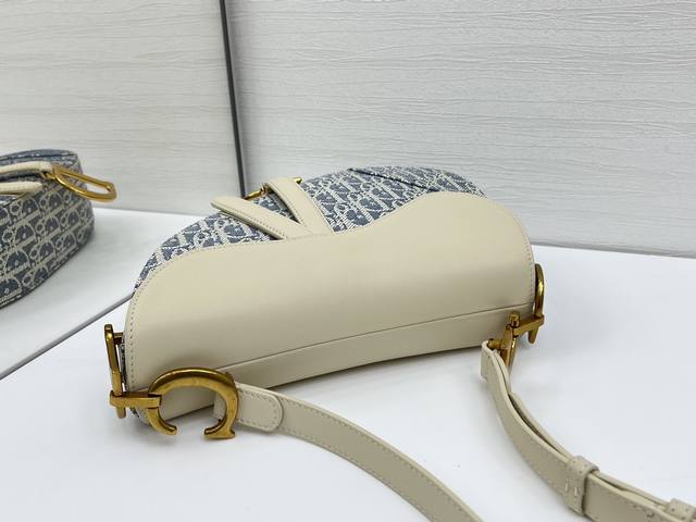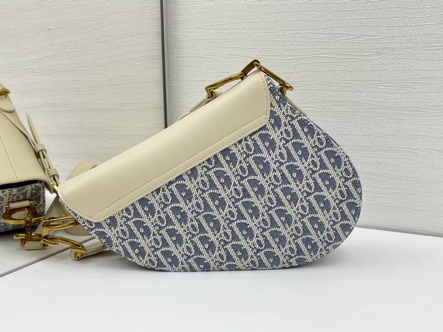Medium Soft Saddle Bag with Shoulder Strap, Grey D Fabric Ddd. This Soft Saddle bag reinterprets a classic Dior design, creating a softer version. It elegantly combines light biscuit-colored smooth calfskin with blue checkered fabric, while lightweight cotton denim is adorned with durable raffia thread embroidery, highlighting the classic Oblique print. It features a saddle flap, a strap embellished with stirrup D-shaped charms, and a magnetic zipper for added style. Compartments easily hold various everyday essentials. The medium size comes with a thin shoulder strap featuring numbered notches, paying homage to the adjustable stirrup length of a saddle for comfortable riding. It can be worn over the shoulder or crossbody. Ddd Adorned with a stirrup-shaped D-shaped charm and magnetic pull strap. Ddd Shoulder strap adorned with the Cd logo. Ddd Adjustable thin shoulder strap. Ddd Model: 0455. Ddd Dimensions: 24 x 20 x 7 cm (L x H x W). Ddd Can hold 1 mobile phone, 1 wallet, 1 card holder, sunglasses, and lipstick. Ddd