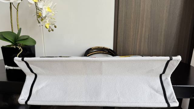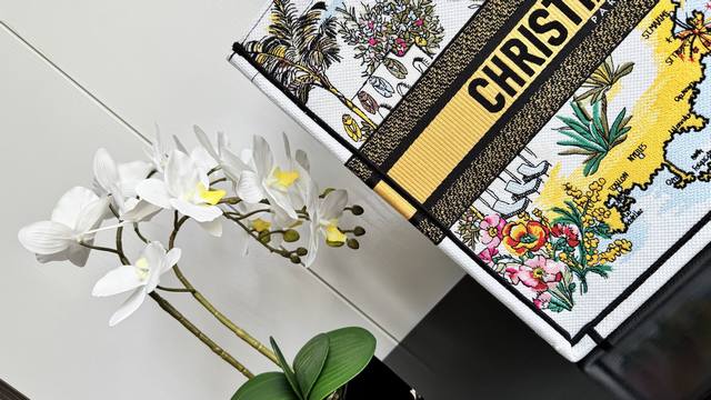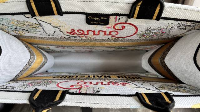 Designed by Maria Grazia Chiuri, Creative Director of Dior Women's Collection, this Book Tote handbag is a flagship product that embodies the Dior aesthetic. The white style is decorated with a multi-color Butterfly Around The World pattern embroidered all over, highlighting the classic butterfly beauty of the series, and embellished with the words "L'envol Des Papillons D