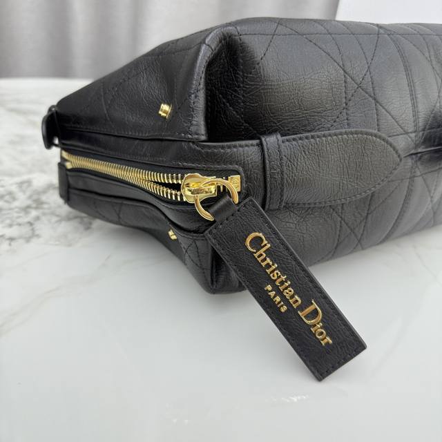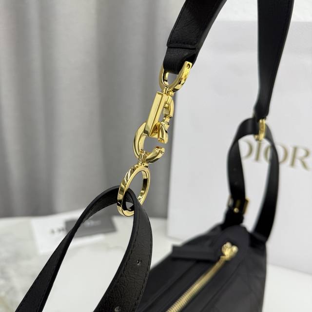 Small D-Journey Handbag - Black Goat Jacket with Gold Buckle - Item No.: M2416 Ddd This D-Journey handbag is a new addition to the collection, making a stunning debut at the Dior Spring/Summer 2025 ready-to-wear show. Made of soft material, it offers a modern interpretation of the dumpling bag silhouette. Crafted from black pleated calfskin, it features flat, oversized cannage stitching, a fresh take on Dior's classic pattern. A zip pocket inside the main compartment adds a touch of sophistication, while two decorative side pockets with large leather zipper pulls adorned with the Christian Dior Paris logo. The small size, with an adjustable top leather handle and leather shoulder strap, allows for hand-carrying, shoulder-carrying, or crossbody wear, making it ideal for everyday styling. Ddd Outer Material: Cowhide Leather Ddd Lining: Fabric Ddd Excluding embellishments and stitching Ddd Zipper closure Ddd Leather shoulder strap and adjustable top handle with gold-finished metal hooks Ddd Side decorative pocket with leather zipper pulls and vintage gold-finished Christian Dior Paris logo Ddd Interior zippered pocket Ddd Includes dust bag Ddd Made in Italy Ddd Dimensions: 25.5 x 14.5 x 14 cm (L x H x W) Ddd Can hold 1 mobile phone, 1 wallet, sunglasses, and lipstick Ddd Shoulder strap length: 56 x 71 cm Ddd Shoulder strap tip to bag tip length: 26 x 33 cm Ddd Top handle length: 27 x 42 cm Ddd Handle tip to bag tip length: 11 x 18 cm Ddd Weight: 550 g Ddd Size and weight details may vary depending on the material.