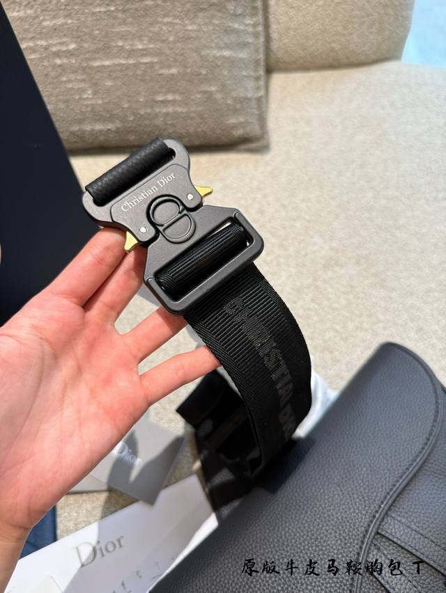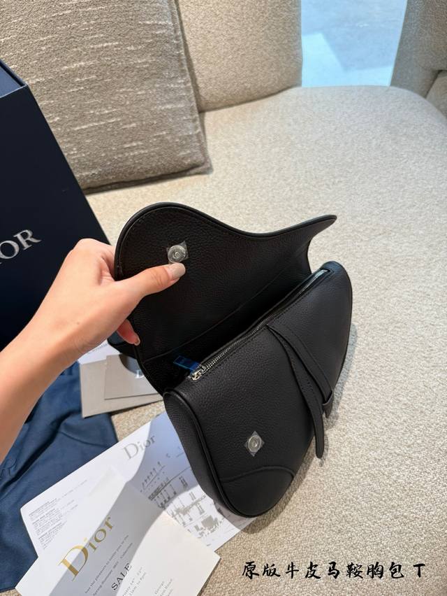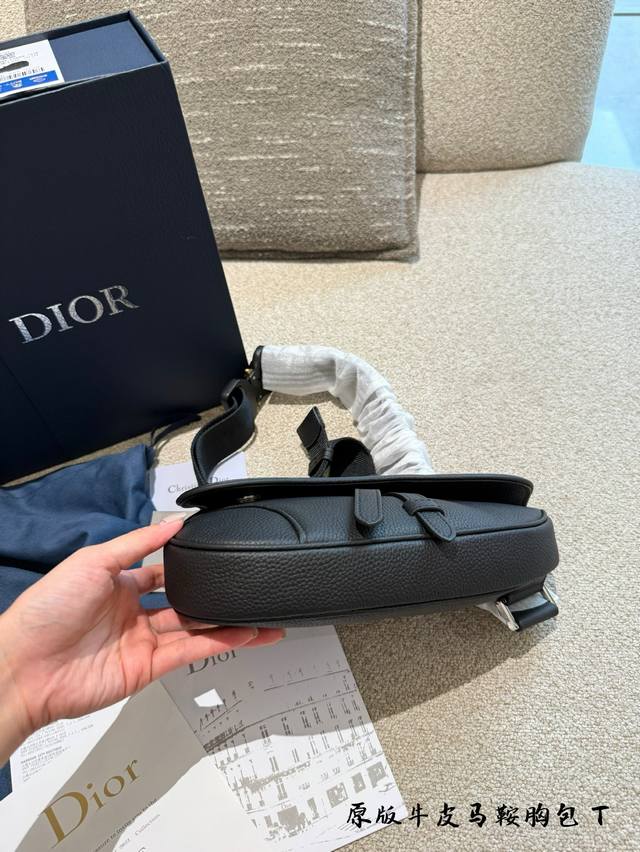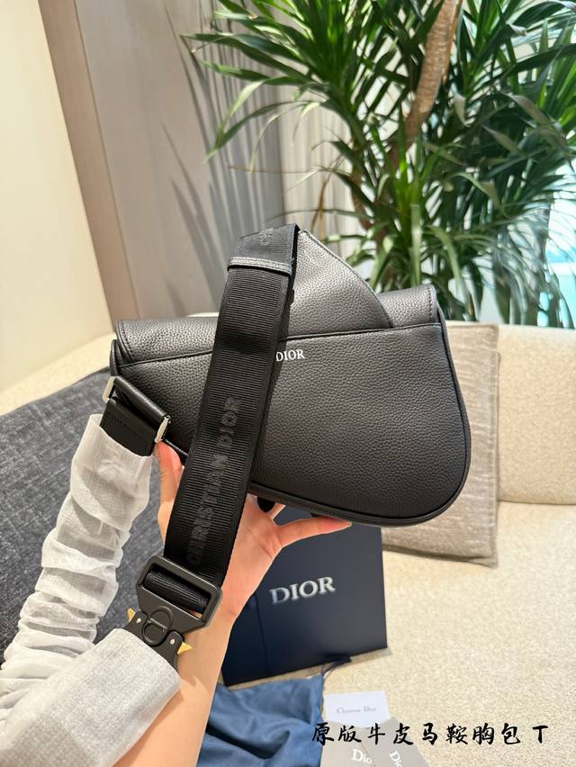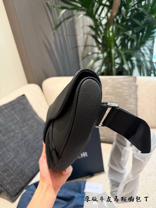 The Dior Men's Saddle Bag, a Unique Appeal for Both Men and Women. Speaking of saddle bags, the women's version is probably the most popular topic. Today, let's discuss the men's version. First, the design: this men's saddle bag is presented as a chest bag, in line with current trends and trends. Compared to the women's version, it's more individualistic, so I think it'll look even more special on a woman! More trendy! More stylish! Carrying it in front of you or behind you creates completely different effects. It's like buying two bags, depending on your outfit. Let's take a look at the material: black grained cowhide leather. The flap opens to a zippered compartment, which also has an internal flat pocket. The shoulder strap is adjustable, and the coolest thing about it is the connecting buckle. Maybe from a straight man's perspective, the dark metallic Dior logo makes it look amazing. As for the size issue that everyone cares about, I can say responsibly that the size is very suitable for both tall and short people, including girls. It can also fit all the daily necessities you carry when going out. It is a perfect 25cm bag that combines practicality and style.
