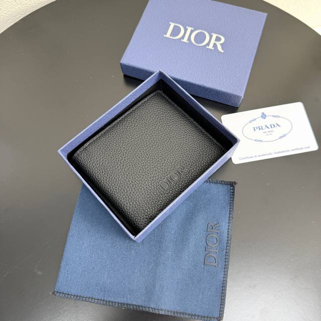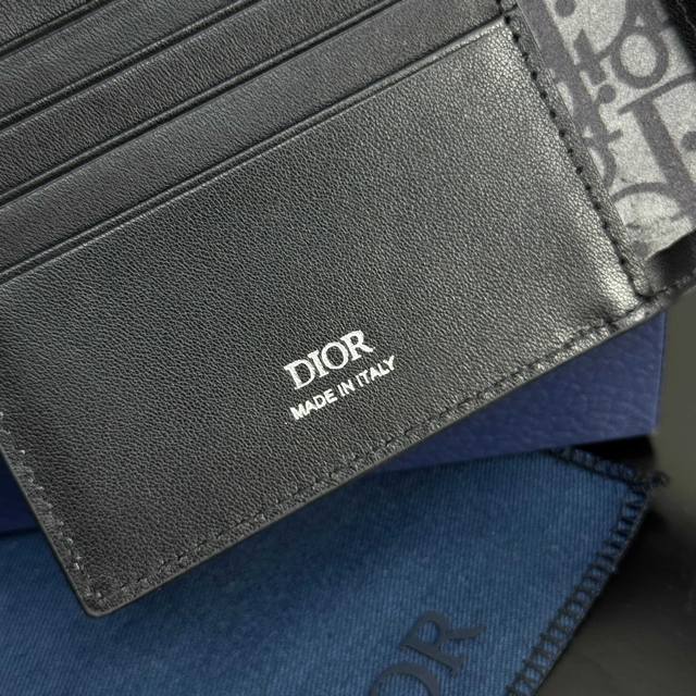 This bi-fold wallet is a small, exquisitely elegant accessory. Crafted from high-grain calfskin, it features a Dior logo on the front. The interior boasts a double cash compartment, two bill pockets, and eight card slots. The bi-fold design allows for easy placement in a pocket or purse. Body: Calfskin Leather Lining: Calfskin Leather, Technical Fabric 8 Card Slots Double Cash Compartment 2 Bill Pockets Front Metallic Copper-Coated Dior Icon Logo Interior with Embossed Dior Logo Includes Dust Bag Dimensions: 11.5 x 9.5 x 1.7 cm (Length x Height x Width) Model: 8003A