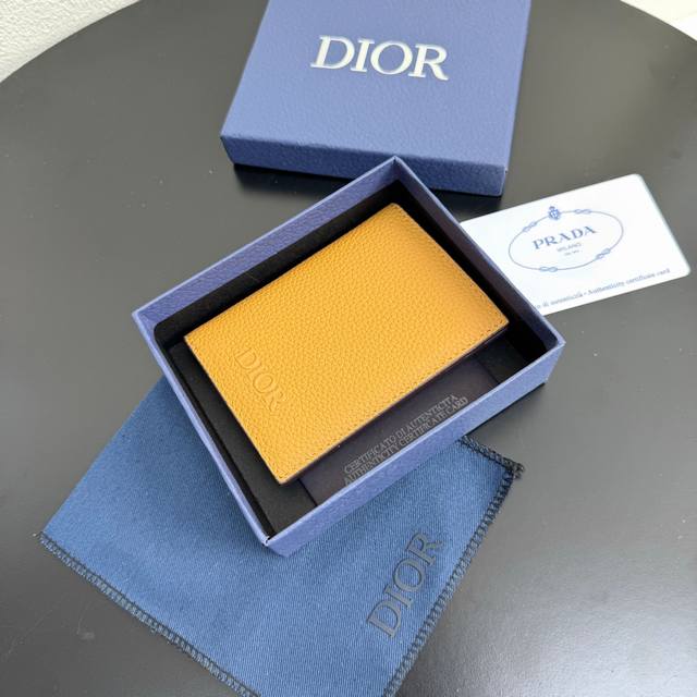 This elegant and practical vertical bi-fold card holder is crafted from high-grain cowhide leather and features a Dior logo on the front. It has three card slots on each side and two receipt pockets. Refined and elegant, it easily fits in your pocket for convenient carrying. Body: Cowhide leather Lining: Cowhide leather, technical fabric 6 card slots 2 receipt pockets Front: Copper-plated Dior logo Interior: Embossed Dior logo Includes dust bag Dimensions: 7.5 x 11.2 x 1.9 cm (L x H x W) Model: 8005