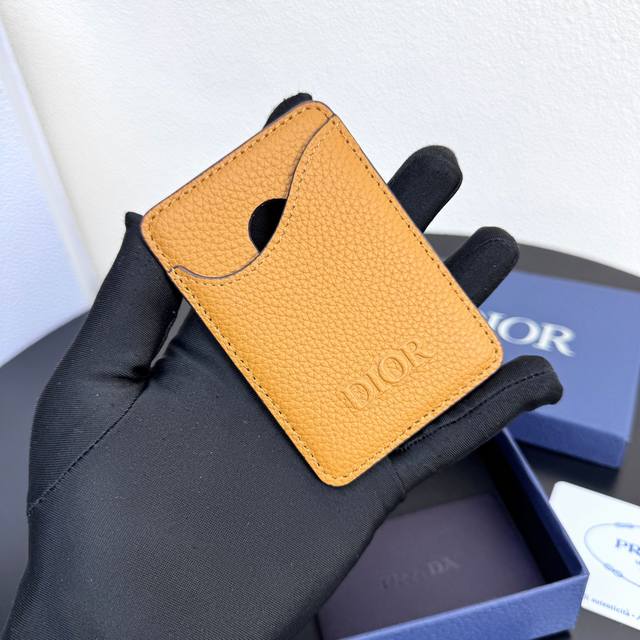 This saddle-shaped magnetic card holder is an elegant accessory showcasing the exquisite craftsmanship of the Dior atelier. The Dior Gravity printed leather features an embossed design that delicately presents the classic Dior pattern on cowhide leather, while the card slots display the classic saddle curve, elevating its style. Elegantly designed and adorned with the Dior logo, it can be paired with a Magsafe phone case. Features include: 1 card slot, front with brass-plated Dior logo, interior with embossed Dior logo, includes a dust bag, Made in Italy, dimensions: 6.5 x 9.5 cm (L x H), item number: 8009, and can hold bank cards.