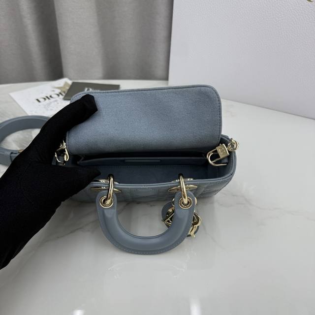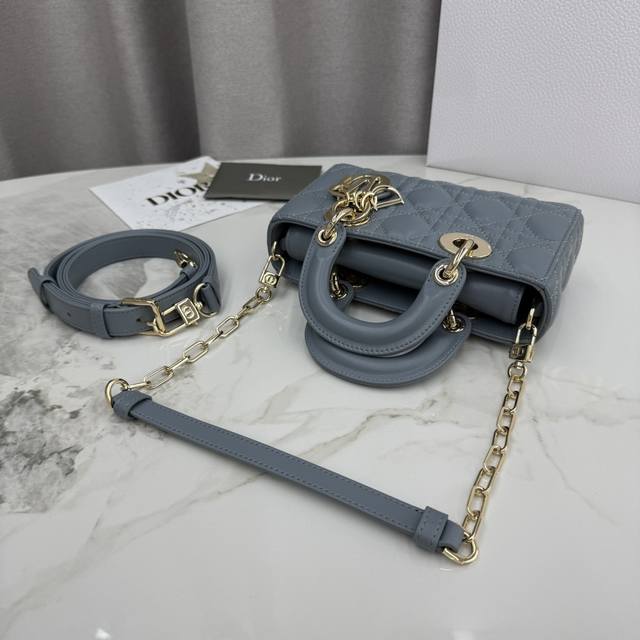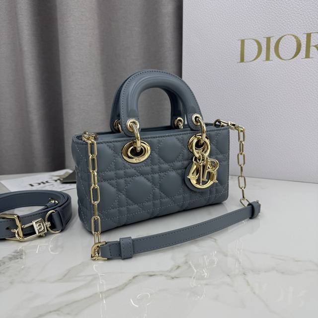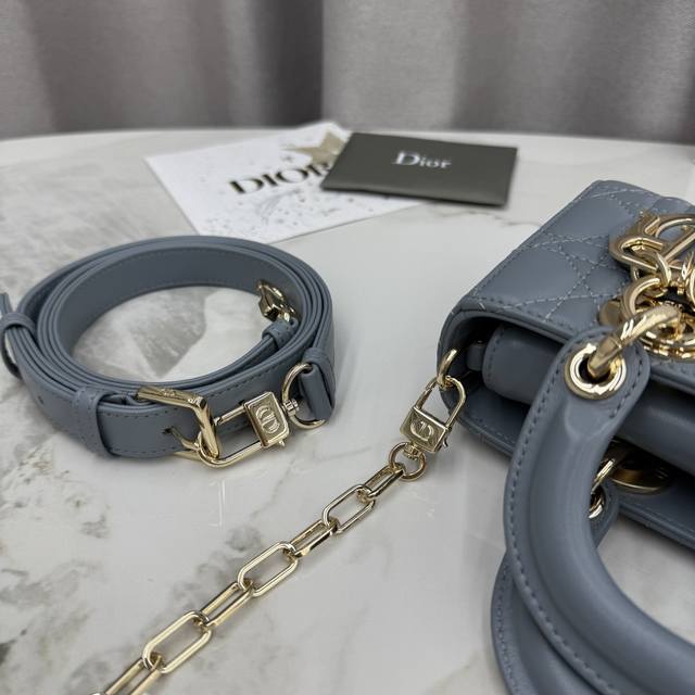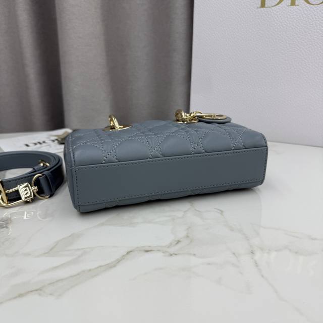 This top-quality replica Lady D-Joy handbag is a new addition to the Fall/Winter 2025 ready-to-wear collection, highlighting the classic minimalist aesthetics of the Lady Dior series and embodying Dior's profound insight into elegance and beauty. Crafted from hazy blue lambskin leather with cannage stitching, its chic and elegant design is timeless. A light gold-tone DIOR charm elevates the overall style, adding a touch of dynamism to the refined silhouette. The mini version features a detachable chain shoulder strap and an adjustable, detachable leather shoulder strap, allowing for hand-carrying, shoulder-carrying, or crossbody wear