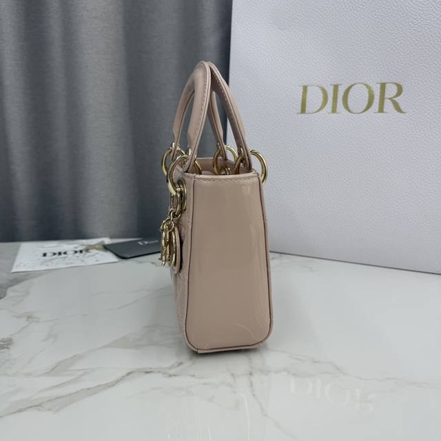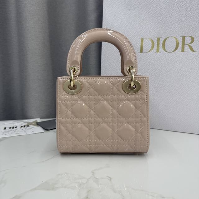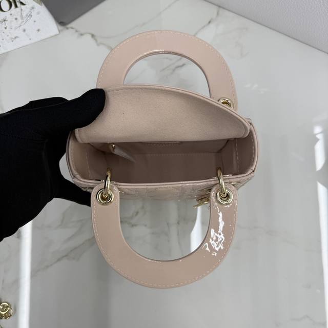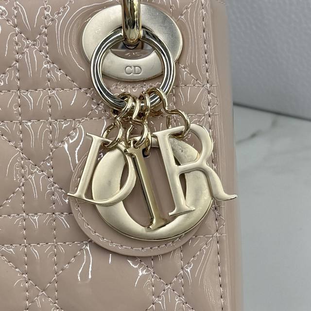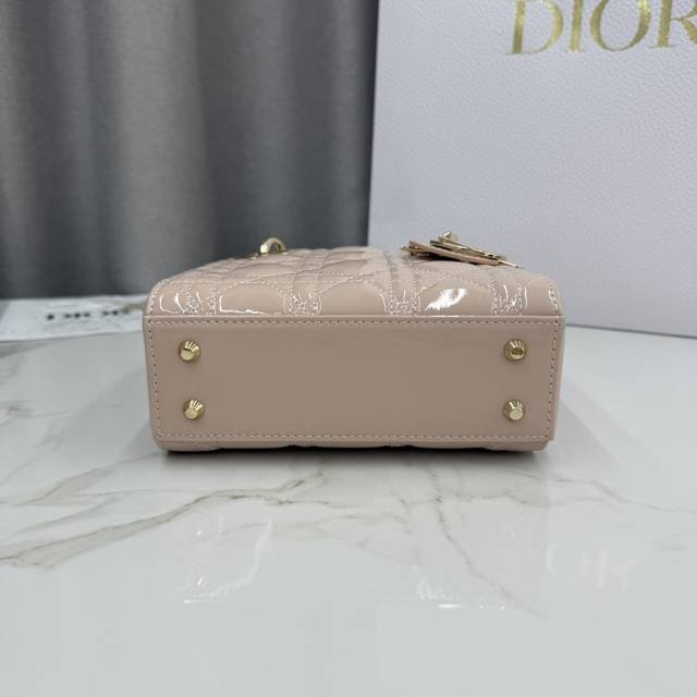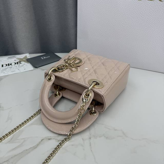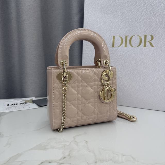 Top-quality original single-compartment Lady Dior bag in blush pink patent leather with gold hardware - Item No.: M0505 DDD This Lady Dior handbag embodies Dior's profound insight into elegance and beauty. Crafted from blush pink patent leather calfskin, it features a classic and striking quilted texture with cannage stitching, a timelessly chic and elegant design. Adorned with a light gold-finished DIOR charm, it adds a touch of dynamism to its exquisite silhouette. The mini version, with a detachable chain shoulder strap, can be carried by hand or crossbody, making it the perfect companion for evening wear. DDD Body: Cowhide leather DDD Lining: Sheepskin leather, cow leather DDD Detachable chain DDD Internal zippered pocket DDD Can be paired with other Dior embroidered shoulder strap DDD Includes dust bag DDD Made in Italy or France *This product is produced in multiple countries. Please see the product label for the country of origin of your actual purchase. DDD Dimensions: 17 x 15 x 7 cm (L x H x W) DDD Can hold 1 mobile phone, 1 card holder, and lipstick DDD Chain length: 120 cm DDD Chain top to bag top length: 58 cm DDD Top handle length: 24 cm DDD Top handle top to bag top length: 6.5 cm DDD Weight: 700 grams DDD Size and weight details may vary depending on the product materials DDD