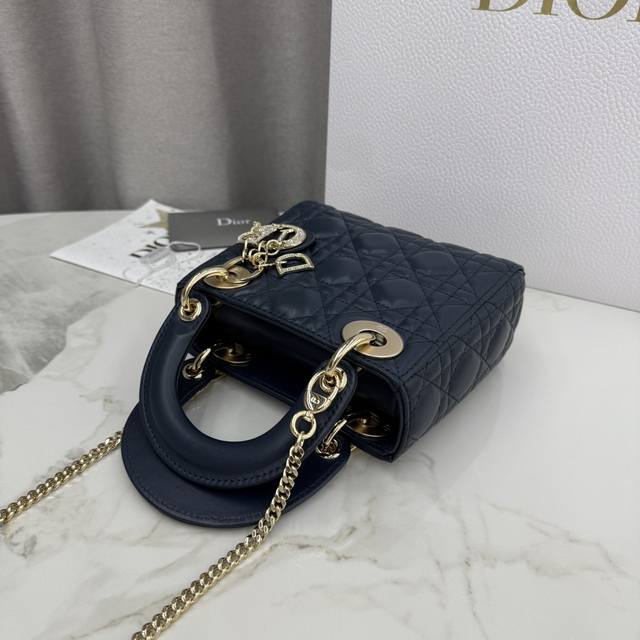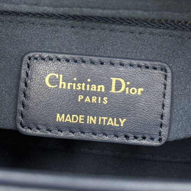 Top-quality original single-compartment Lady Dior bag in midnight blue lambskin with diamond buckle - Item No.: M0505 DDD This Lady Dior handbag embodies Dior's profound insight into elegance and beauty. Crafted from midnight blue lambskin, it features a classic and striking quilted texture with cannage stitching, a timelessly chic and elegant design. Adorned with a diamond-finished DIOR charm, it adds a touch of dynamism to its exquisite silhouette. The mini version, with a detachable chain shoulder strap, can be carried by hand or crossbody, making it the perfect companion for evening wear. DDD Body: Lambskin leather DDD Lining: Lambskin leather DDD Detachable chain DDD Internal zippered pocket DDD Can be paired with other Dior embroidered shoulder strap DDD Includes dust bag DDD Dimensions: 17 x 15 x 7 cm (L x H x W) DDD Can hold 1 mobile phone, 1 card holder, and lipstick DDD Chain length: 120 cm DDD Length from chain top to bag top: 58 cm DDD Top handle length: 24 cm DDD Length from top handle top to bag top: 6.5 cm DDD Weight: 700 grams DDD Size and weight details may vary depending on the product materials DDD
