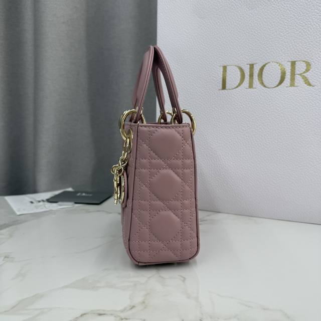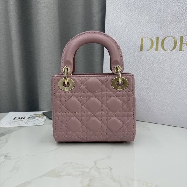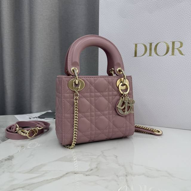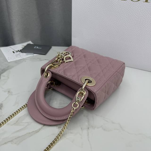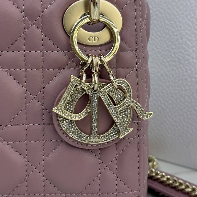 Top-quality original single-compartment vintage pink lambskin diamond buckle Lady Dior bag - Item No.: M0505 DDD This Lady Dior handbag embodies Dior's profound insight into elegance and beauty. Crafted from vintage pink lambskin, it features a classic and striking quilted texture with cannage stitching, a timelessly chic and elegant design. Adorned with a diamond-finished DIOR charm, it adds a touch of dynamism to its exquisite silhouette. The mini version, with a detachable chain shoulder strap, can be carried by hand or crossbody, making it the perfect companion for evening wear. DDD Body: Lambskin leather DDD Lining: Lambskin leather DDD Detachable chain DDD Internal zippered pocket DDD Can be paired with other Dior embroidered shoulder strap DDD Includes dust bag DDD Dimensions: 17 x 15 x 7 cm (L x H x W) DDD Can hold 1 mobile phone, 1 card holder, and lipstick DDD Chain length: 120 cm DDD Length from chain top to bag top: 58 cm DDD Top handle length: 24 cm DDD Length from top handle top to bag top: 6.5 cm DDD Weight: 700 grams DDD Size and weight details may vary depending on the product materials DDD