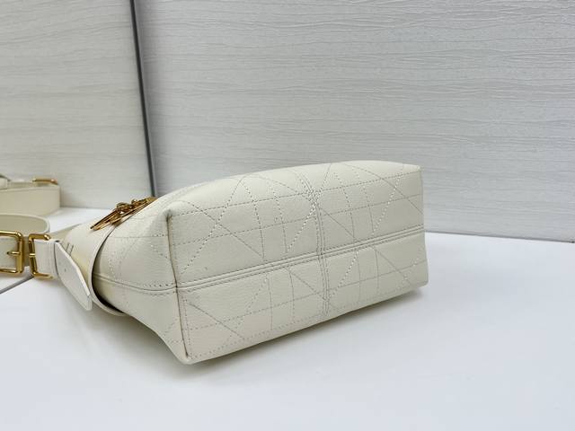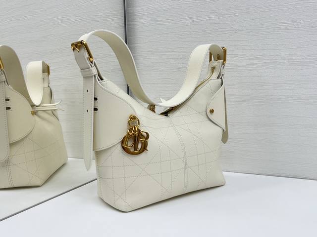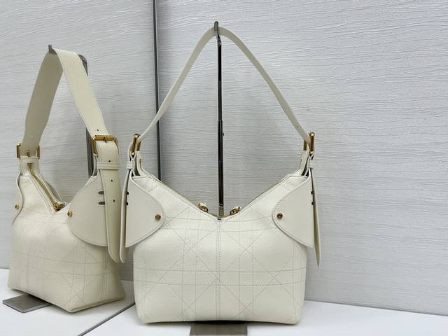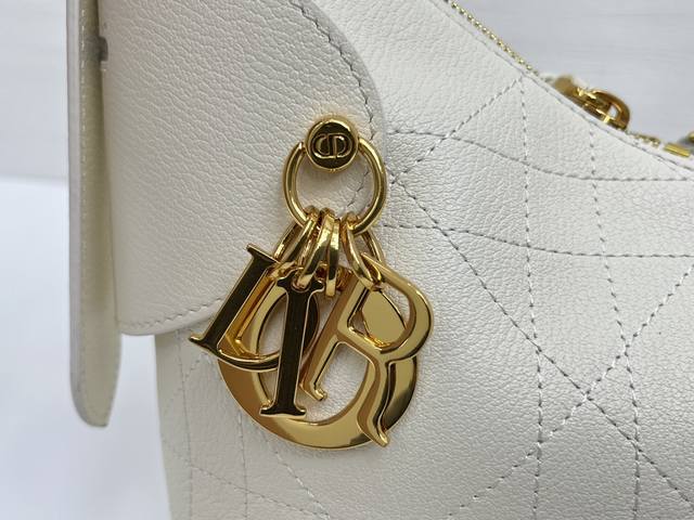 Top-quality original This Dior Voyage handbag is a new product from the 2026 early spring ready-to-wear series, combining soft lines and elegant details to create a coordinated silhouette. It is carefully crafted from white grained cowhide leather and decorated with flat oversized rattan check stitching, which reinterprets Dior's classic pattern. The soft silhouette is enhanced by the vintage gold-finished metal DIOR pendant and ingeniously crafted leather embellishments to enhance the style and make the shape more upright. The main compartment adopts a safe and practical two-way zipper closure. The small size style, the top handle is equipped with an adjustable buckle, and can be carried on the shoulder, making it an ideal companion for daily look. Size 22X15X9.5Cm