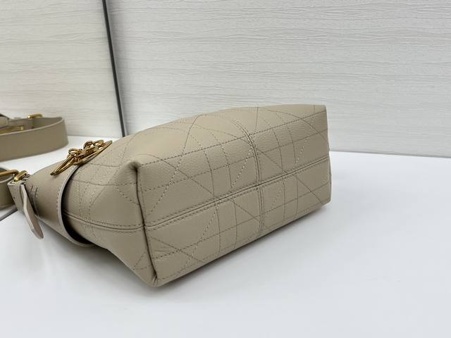 Top-quality original This Dior Voyage handbag is a new product from the 2026 early spring ready-to-wear series, combining soft lines and elegant details to create a coordinated silhouette. It is carefully crafted from apricot grained cowhide leather and decorated with flat oversized rattan check stitching, which reinterprets Dior's classic pattern. The soft silhouette is enhanced by the vintage gold-finished metal DIOR pendant and ingeniously crafted leather embellishments to enhance the style and make the shape more upright. The main compartment adopts a safe and practical two-way zipper closure. The small size style, the top handle is equipped with an adjustable buckle, and can be carried on the shoulder, making it an ideal companion for daily look. Size 22X15X9.5Cm