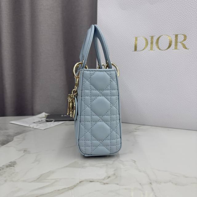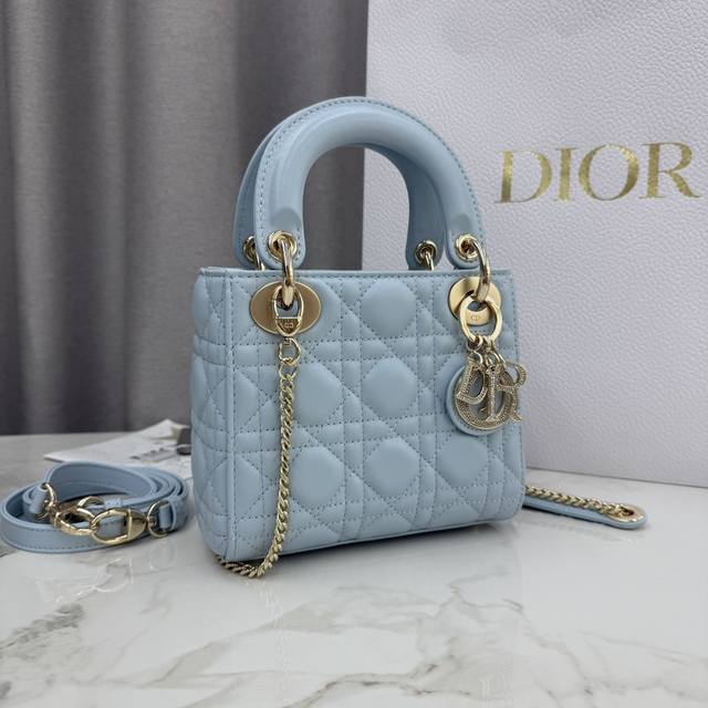 Top-quality original three-compartment space blue lambskin diamond buckle Lady Dior bag - Item No.: M0505 DDD This Lady Dior handbag embodies Dior's profound insight into elegance and beauty. Crafted from space blue lambskin, it features a classic and striking quilted texture with cannage stitching, a timelessly chic and elegant design. Adorned with a diamond-finished DIOR charm, it adds a touch of dynamism to its exquisite silhouette. The mini version, with a detachable chain shoulder strap, can be carried by hand or crossbody, making it the perfect companion for evening wear. DDD Body: Lambskin Leather DDD Lining: Lambskin Leather DDD Detachable Chain DDD Internal Zippered Pocket DDD Can be paired with other Dior embroidered shoulder strap DDD Includes dust bag DDD Dimensions: 17 x 15 x 7 cm (L x H x W) DDD Can hold 1 mobile phone, 1 card holder, and lipstick DDD Chain Length: 120 cm DDD Length from top of chain to top of bag: 58 cm DDD Top handle length: 24 cm DDD Length from top of top handle to top of bag: 6.5 cm DDD Weight: 700 grams DDD Size and weight details may vary depending on the product materials DDD