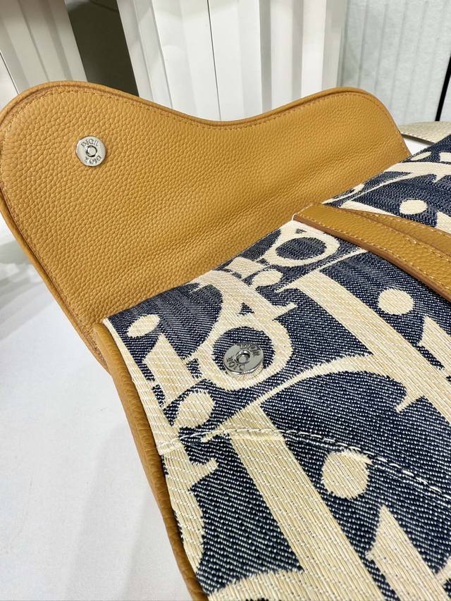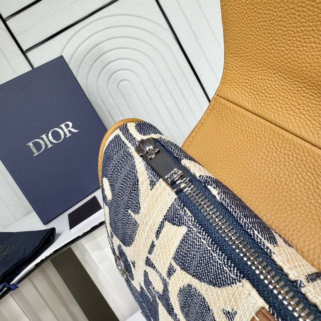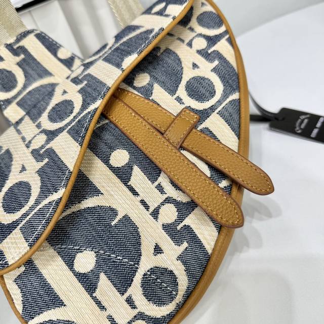 Top-tier original authentic product DDD Guaranteed imported top-grain cowhide, rejects split leather and microfiber leather DDD Saddle Bag DDD Blue and beige raffia-effect Oblique print denim fabric paired with brown grained cowhide leather DDD Item No.: 1Adpo130Rom_H567 DDD This saddle bag is a classic Dior item. Crafted from materials such as raffia-effect Oblique print denim fabric, it is adorned with blue jacquard embroidery and contrasting beige stitching, offering a fresh interpretation of the classic Dior style. It features brown grained cowhide leather details, a magnetic flap highlighting classic lines, and a hidden zipper closure beneath the flap for secure storage of various everyday items. It comes with an adjustable shoulder strap decorated with a herringbone pattern for added style and can be worn crossbody. DDD Body: Cotton, cowhide leather, technical fabric DDD Lining: Technical fabric, cotton, cowhide leather DDD Zippered main compartment with magnetic flap DDD Adjustable herringbone shoulder strap with leather details and CD buckle DDD Metal-coated metal hardware DDD Interior decorated with Dior embossed logo DDD Includes dust bag DDD Made in Italy DDD Dimensions: 27 x 20 x 5 cm (L x H x W) DDD Shoulder strap length: 81.5 x 106.5 cm DDD Weight: 530 grams DDD Can hold various phone models DDD