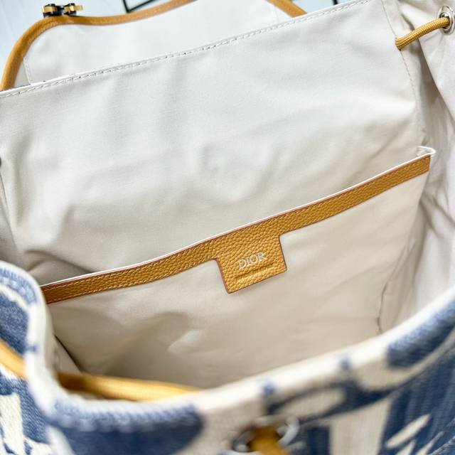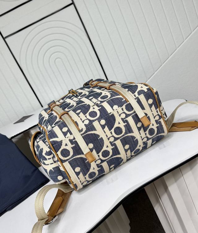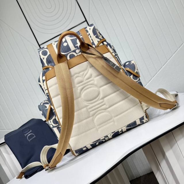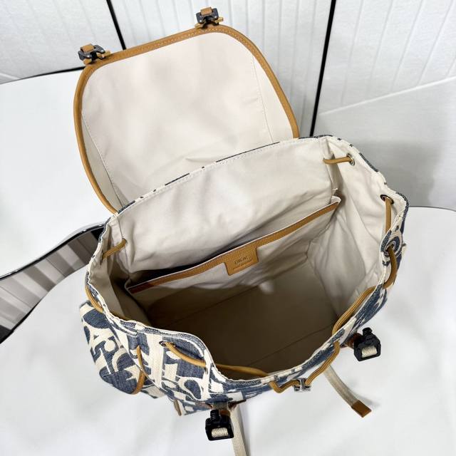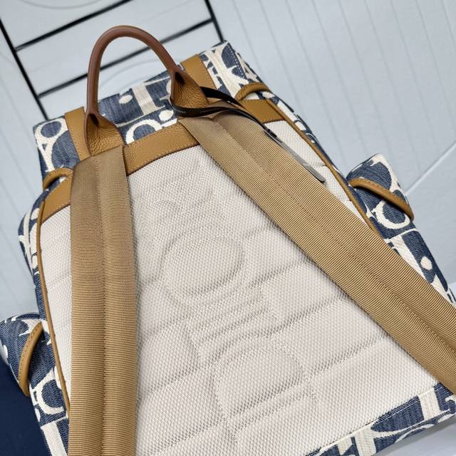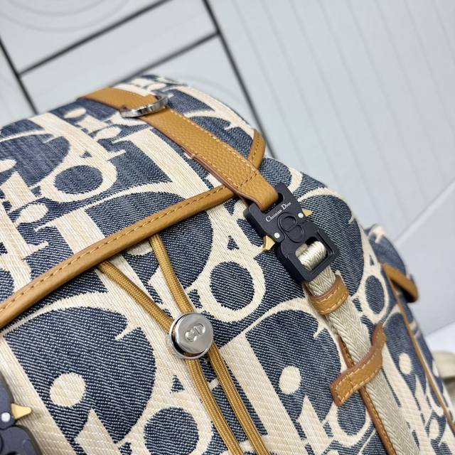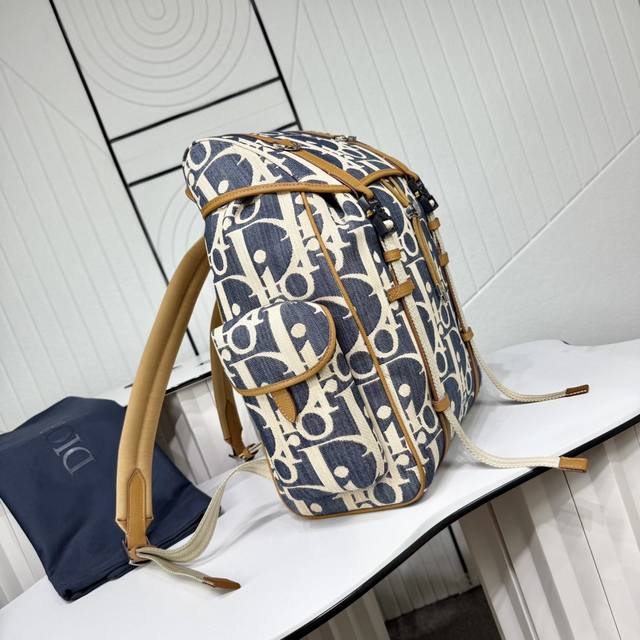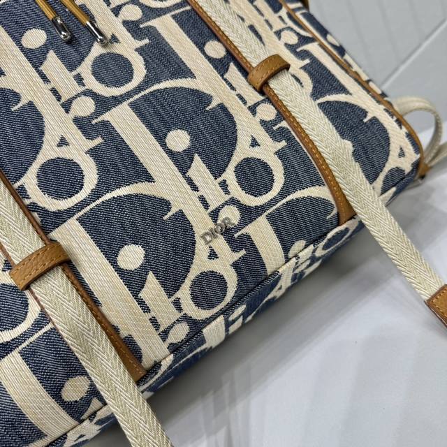 Top-tier original authentic product DDD Guaranteed imported top-grain cowhide, rejecting split leather and microfiber leather DDD Dior Hit The Road Flap Backpack DDD Blue and beige raffia-effect Oblique print denim fabric paired with brown grained cowhide leather DDD Item No.: 1Htba205Rom_H567 DDD This Dior Hit The Road flap backpack blends modern style with Dior's haute couture spirit. Crafted from materials such as raffia-effect Oblique print denim fabric, it features blue jacquard embroidery and contrasting beige stitching, offering a fresh interpretation of the classic Dior logo. Adorned with brown grained cowhide leather details, the flap features a Cd mini aluminum buckle and two herringbone pattern straps, a spacious main compartment, and two side pockets with magnetic flaps. Practical in style, it complements various casual looks. DDD Fabric: Fabric Lining: Fabric main compartment with flap and drawstring DDD Mini aluminum buckle and D-ring DDD Interior flat laptop compartment DDD Magnetic flap side pockets DDD Top leather handle DDD Adjustable padded shoulder straps DDD Padded mesh back with Dior logo DDD Metallic copper Dior logo on front DDD Embossed Dior logo inside DDD Includes dust bag DDD Made in Italy DDD Dimensions: 43 x 43 x 18 cm (L x H x W) DDD Main compartment can hold 1 15-inch laptop, A4 documents, and 1 tablet DDD Side pockets can hold various mobile phone models DDD