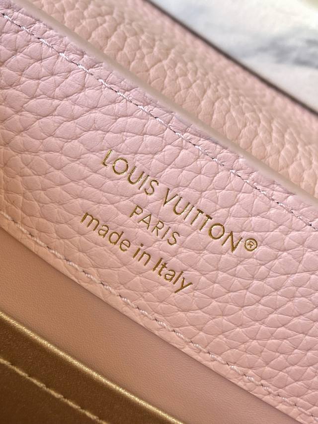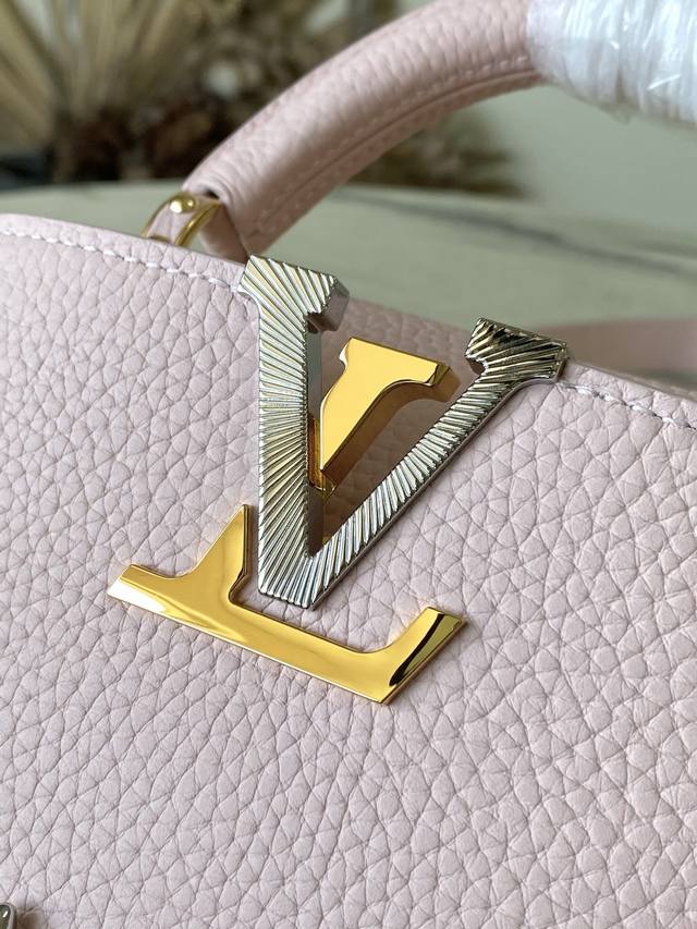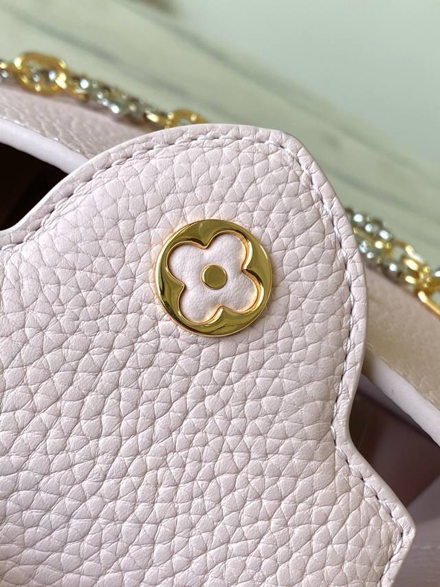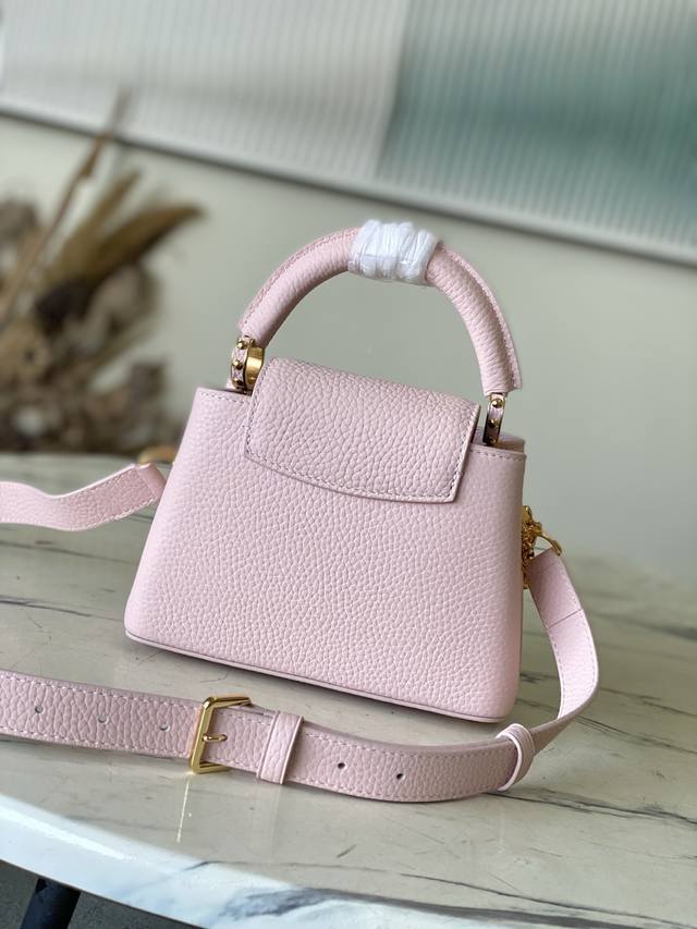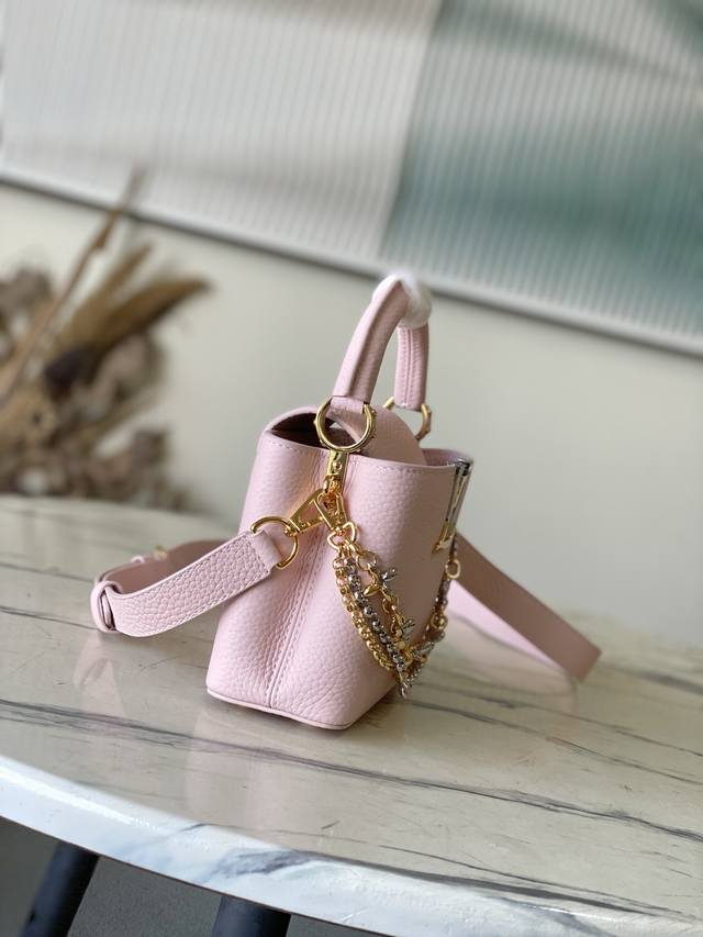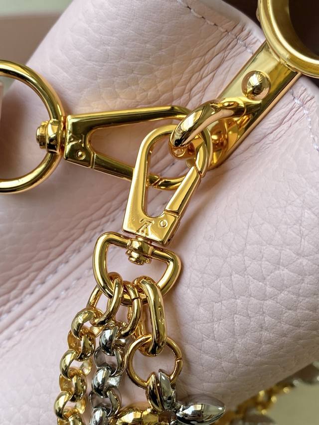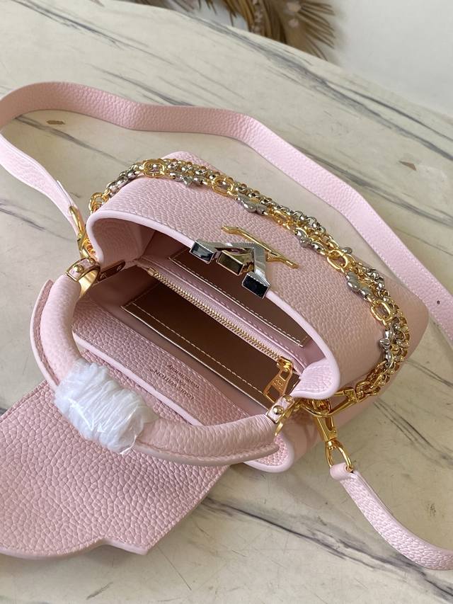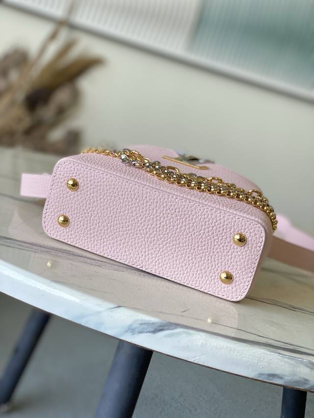 Factory Price p Premium Original Leather M27039 M48865 Ballet Pink Infinity Chain Mini This Capucines comes in a striking, sophisticated jewel-toned version adorned with the brand's double-galvanized Infinity chain crafted from Taurillon leather and decorated with the iconic Monogram floral pattern and LV initials. These logos feature a unique radiating effect. This dual-carry style includes an internal flat pocket and offers multiple wearing options. Size: 21 * 14 * 8 cm DDD
