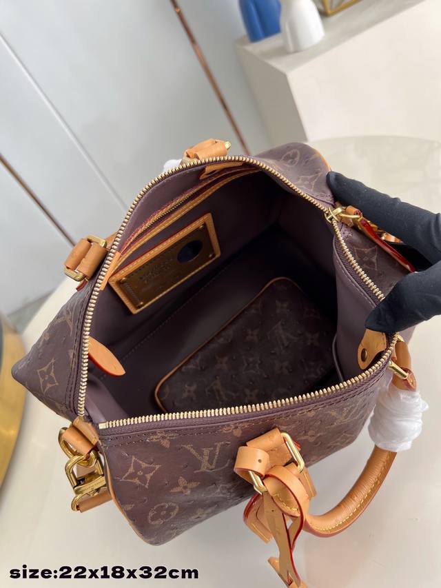 / Factory Price p Top-Tier Original Coffee Ostrich Pattern Speedy p10 Bandouli