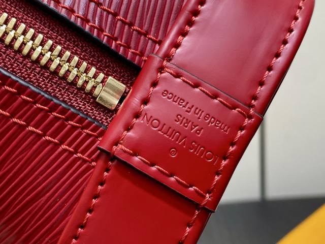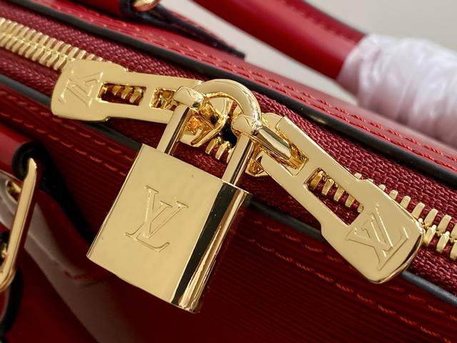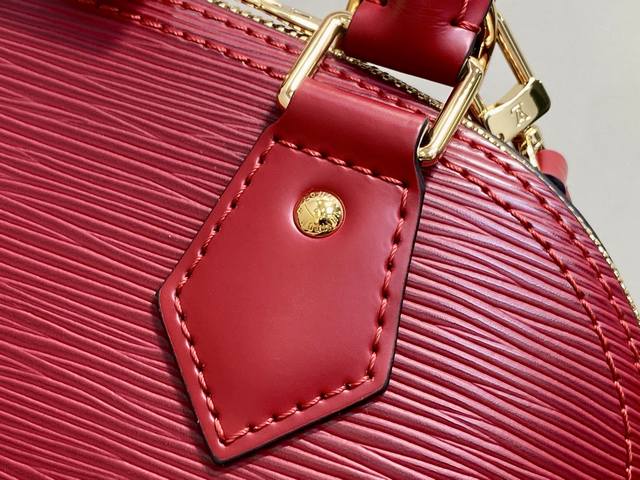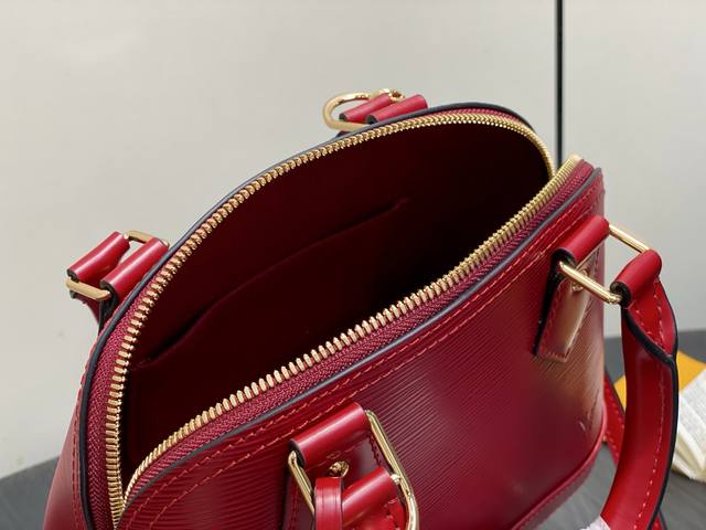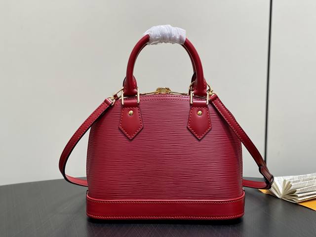 Factory Price p Top-Tier Original M25562 Burgundy Water Ripple Shell Bag Alma Bb Handbag. Inspired by the original design from 1934, this timeless Alma Bb version belongs to the Back to School collection. It's crafted from grained Epi leather with smooth details on the handles and trim, including a signature keybell. Gold hardware adds a chic finish, and a signature padlock adorns the top. It can be worn in multiple ways and features an interior pocket for the security of valuables. 23.5 x 17.5 x 11.5 cm (Length x Height x Width)