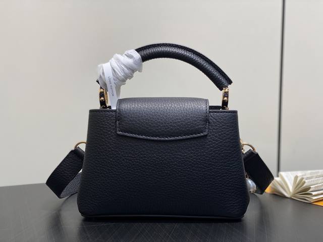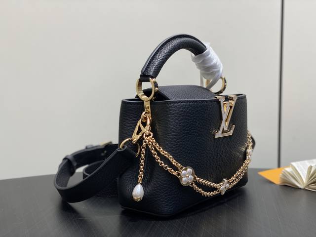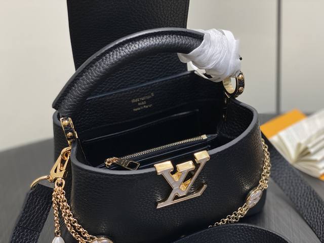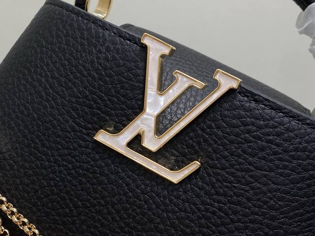 Factory Price P Top-Tier Original M25862 Black Flower Chain Full Leather Cap (Na Ying Style) This Capucines mini handbag is crafted from Taurillon cowhide in a classic tone, inspired by a classic shell necklace from the Daydream collection. The Baroque-style chain is adorned with Monogram flowers, while the LV lettering and delicate beads add a touch of glamour. 21 x 8 x 13 cm (H x W x Length)