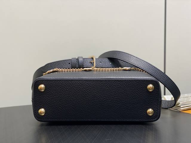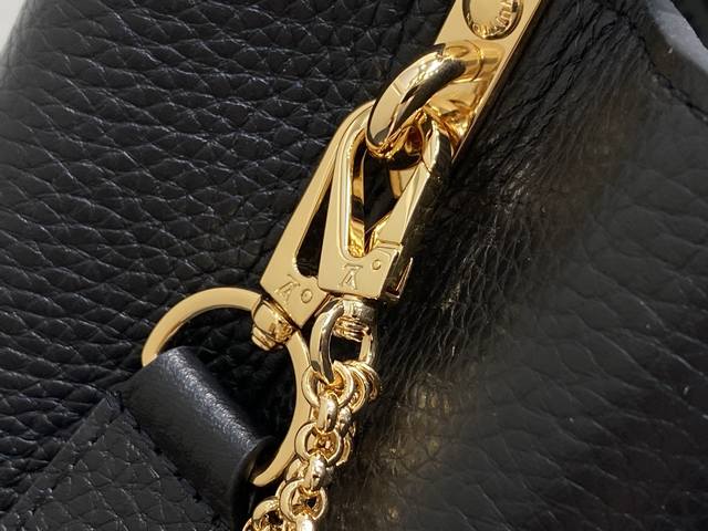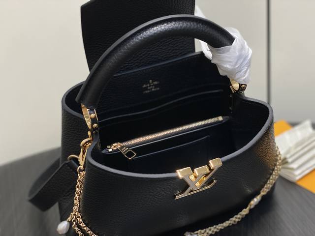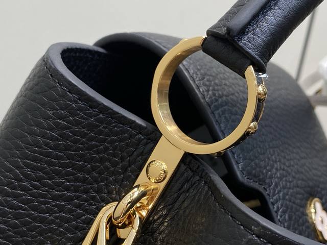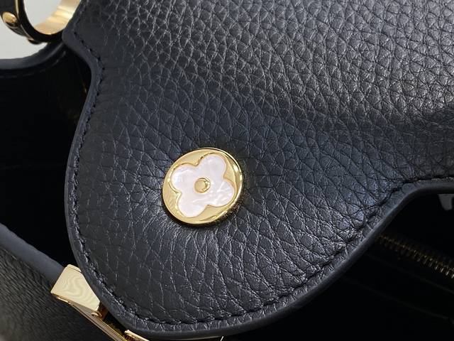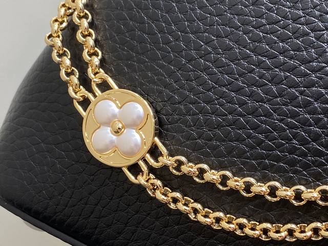 Factory Price P Top-Tier Original M25862 Black Flower Chain Full Leather Cap (Na Ying Style) This Capucines BB handbag is crafted from Taurillon calfskin in a classic tone, inspired by a classic shell necklace from the Daydream collection. The Baroque-style chain is adorned with Monogram flowers, while the LV lettering and delicate beads add a touch of glamour. 27 x 9 x 17 cm (H x W x Length)