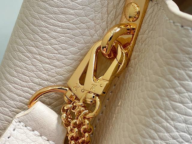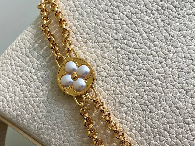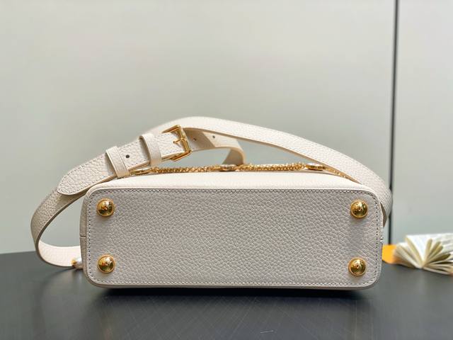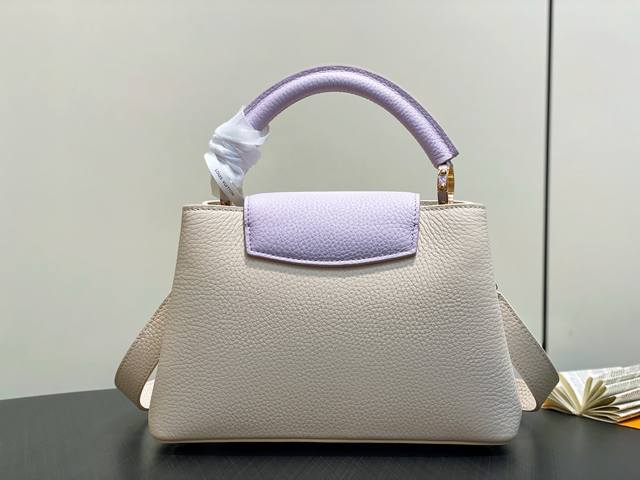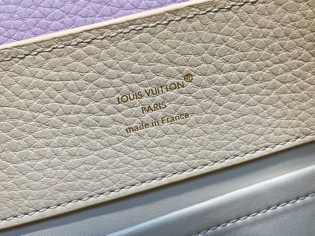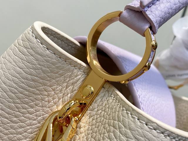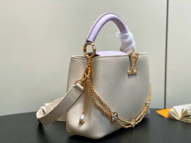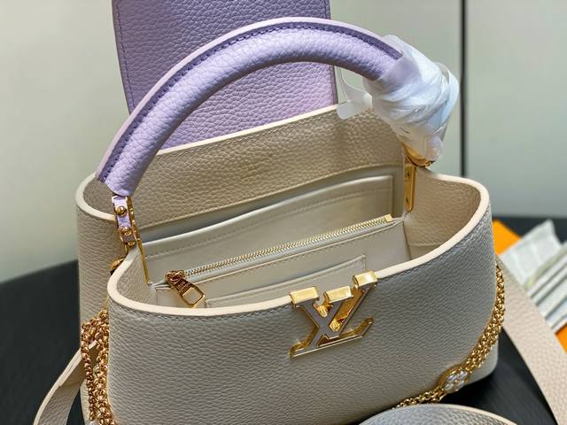 Factory Price P Top-Tier Original M25862 Off-White Taro Purple Flower Chain Full Leather Cap (Na Ying Style) This Capucines BB handbag is crafted from Taurillon cowhide in a classic hue, inspired by a classic shell necklace from the Daydream collection. The Baroque-style chain is adorned with Monogram flowers, while the LV lettering and delicate beads add a touch of glamour. 27 x 9 x 17 cm (H x W x Length)