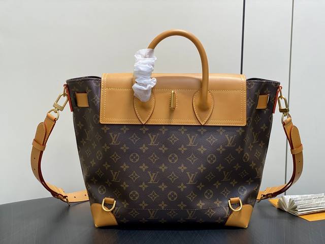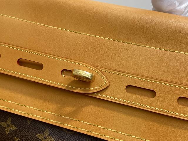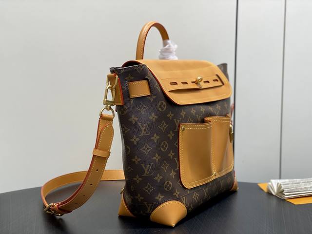 Factory Price P Top-Tier Original M25989 Monogram Yellow Leather Retro Men's Backpack Steamer 30 Handbag This Steamer 30 handbag is designed by Pharrell Williams, crafted from Monogram canvas with a sophisticated design. The double exterior pockets on the front exude a workwear style, while the detachable shoulder strap and flap allow for versatile crossbody, shoulder, hand-carry, or backpack carrying. Dimensions: 33 x 14 x 32 cm (H x W x Length).