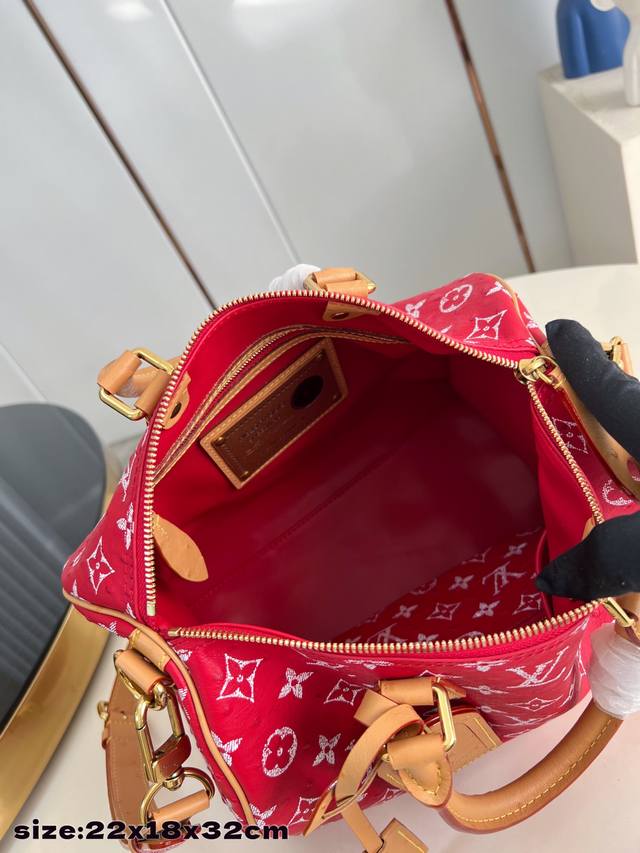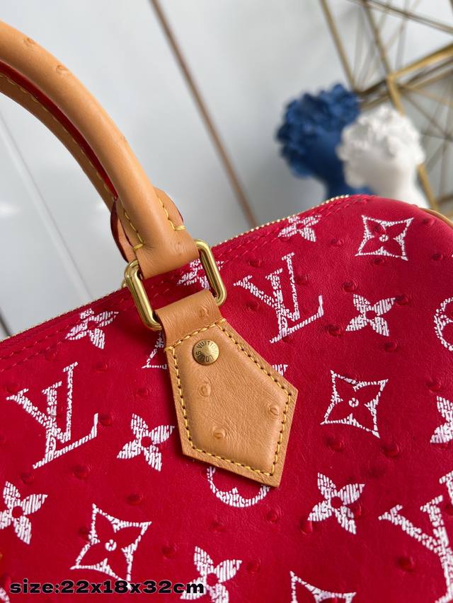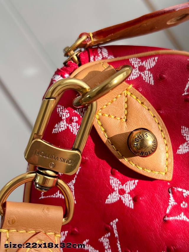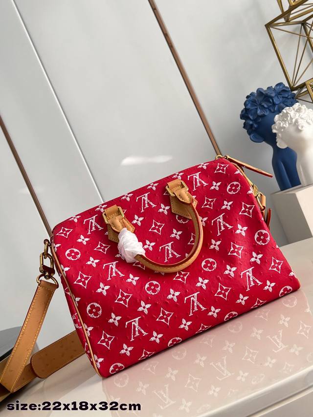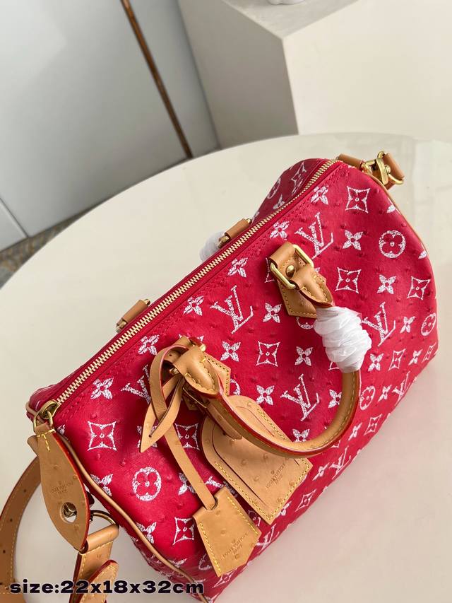 / Factory Price p Top-Tier Original Red Ostrich Pattern Speedy p10 Bandouli