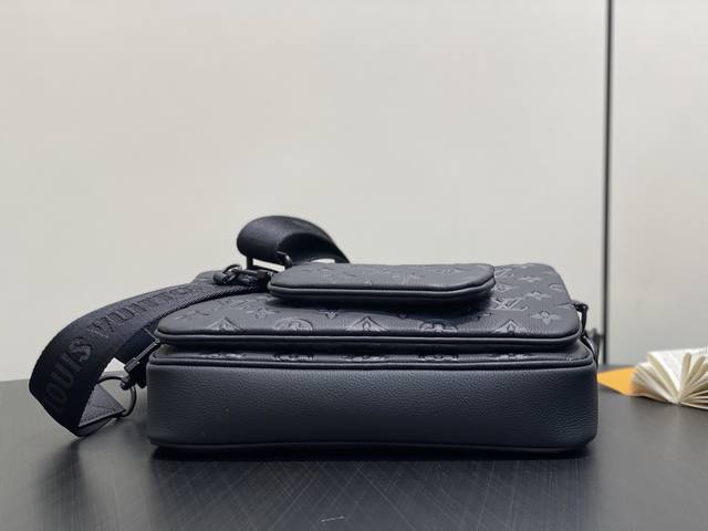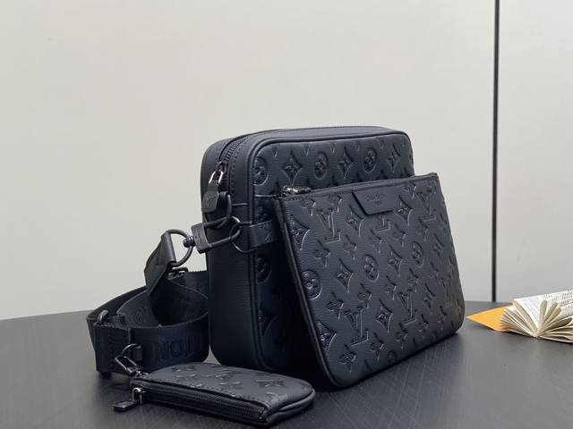 Factory Price p Top-tier original single M26713 black full leather men's three-piece Trio Messenger bag set M27925 dark blue 26713 black 27185 grey striped embossed material is made of soft Monogram Shadow cowhide leather, with Monogram Shadow leather strap and main compartment. The zippered front pocket, shoulder strap and coin purse are all detachable. The shoulder strap is also adjustable to ensure a comfortable and snug fit. Dimensions: 18.5 x 7 x 25 cm DDD