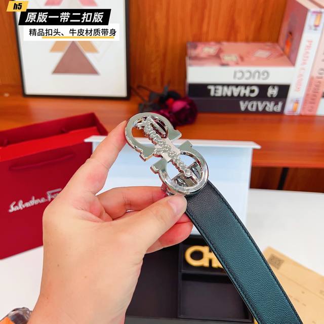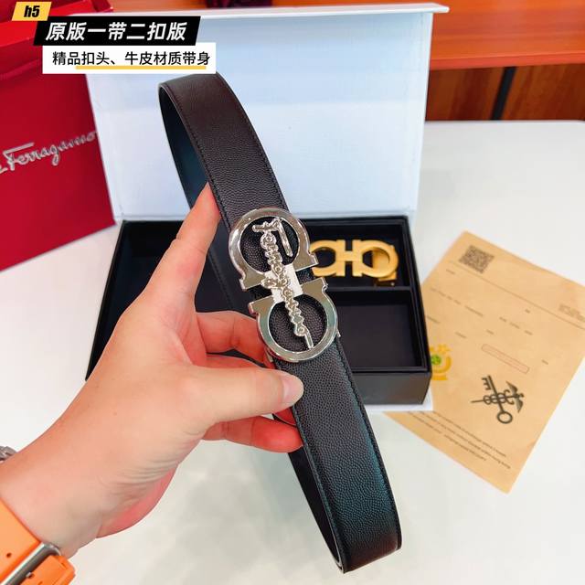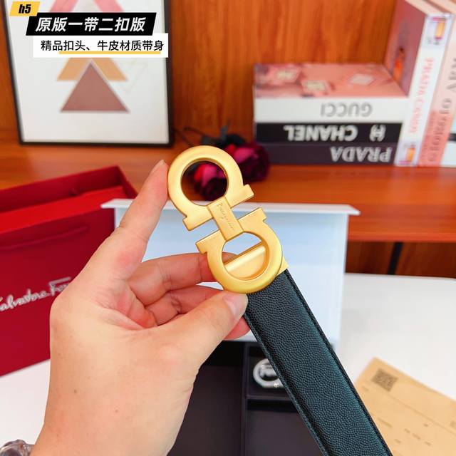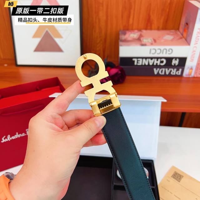 1 belt, 1 buckle, 1 belt, 2 buckles. Fila F double buckle version. 1 belt, 2 buckles. Authentic mold. This belt uses original cowhide leather on both sides, precision electroplated with iconic hardware buckles. 3.5cm. If you need a wooden box, 40
