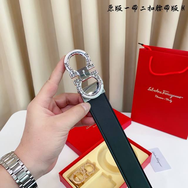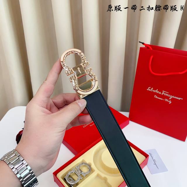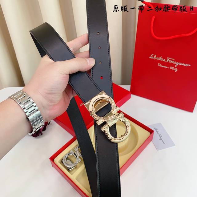1 belt 1 buckle 1 belt 2 buckles Fila F double buckle version 1 belt 2 buckles genuine mold This belt uses original cowhide belt on both sides, precision electroplating iconic hardware buckle for the version counter. 3.5Cm If you need a wooden box 40