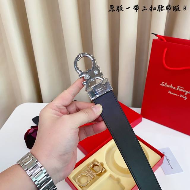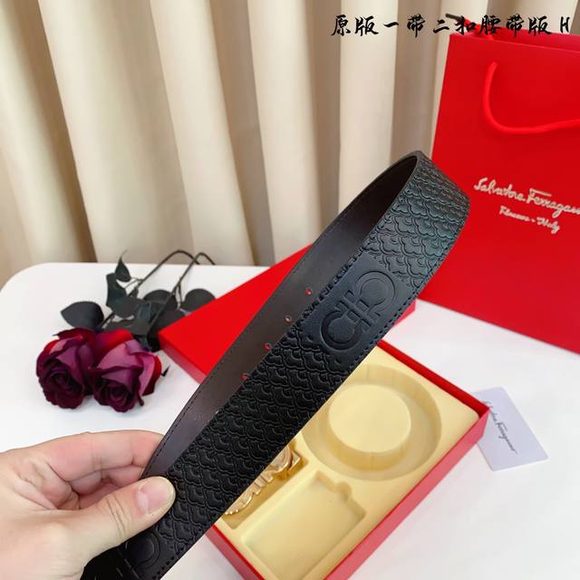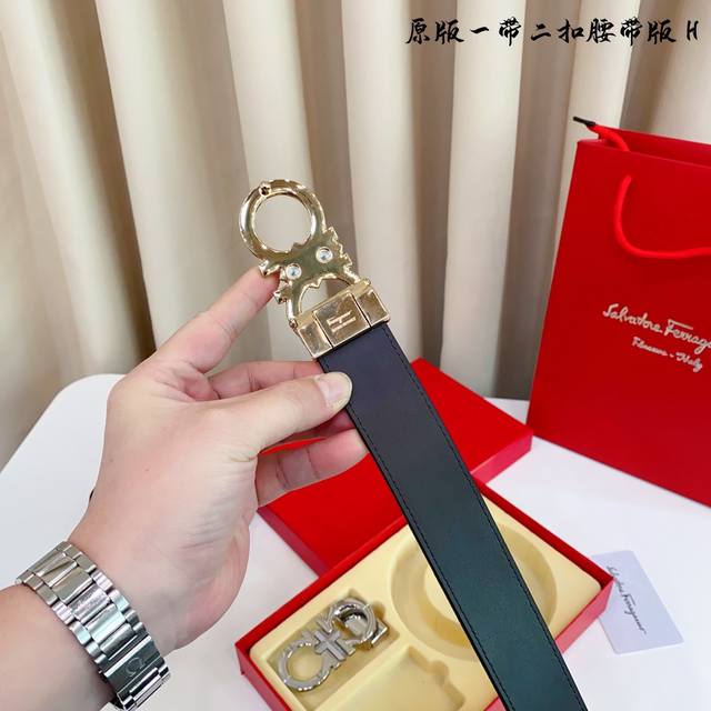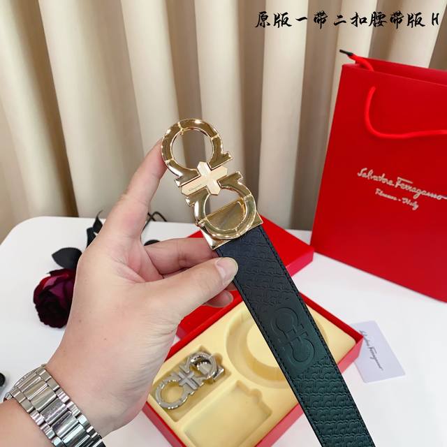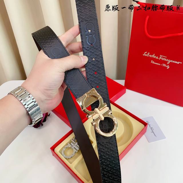 1 belt 1 buckle 1 belt 2 buckles Fila F double buckle version 1 belt 2 buckles genuine mold This belt uses original cowhide belt on both sides, precision electroplating iconic hardware buckle for the version counter. 3.5Cm If you need a wooden box 40