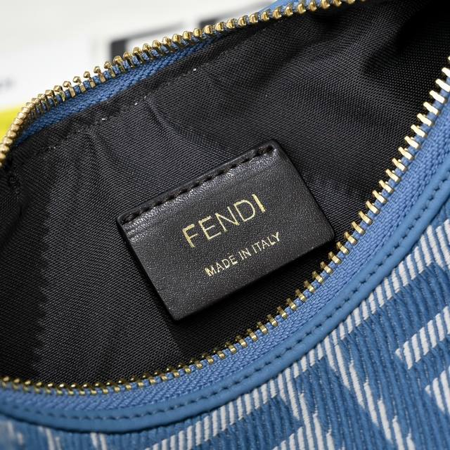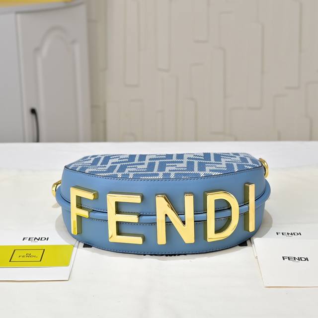 20 Size with box, model 1009. Comes with an adjustable long shoulder strap, chain 30cm, size 20cm. DDD Fend1 Praphy underarm bag, featuring a crescent shape and the classic large metal [Fend1] logo at the bottom. The bag's silhouette fits the body perfectly, exuding style when worn under the arm