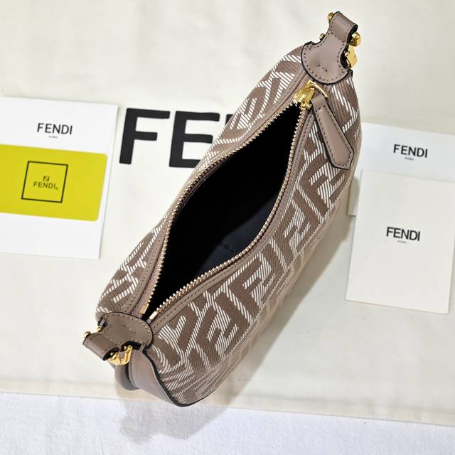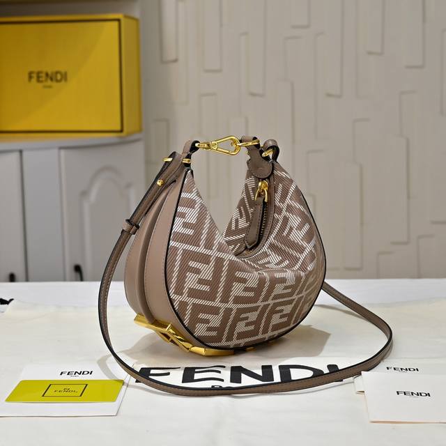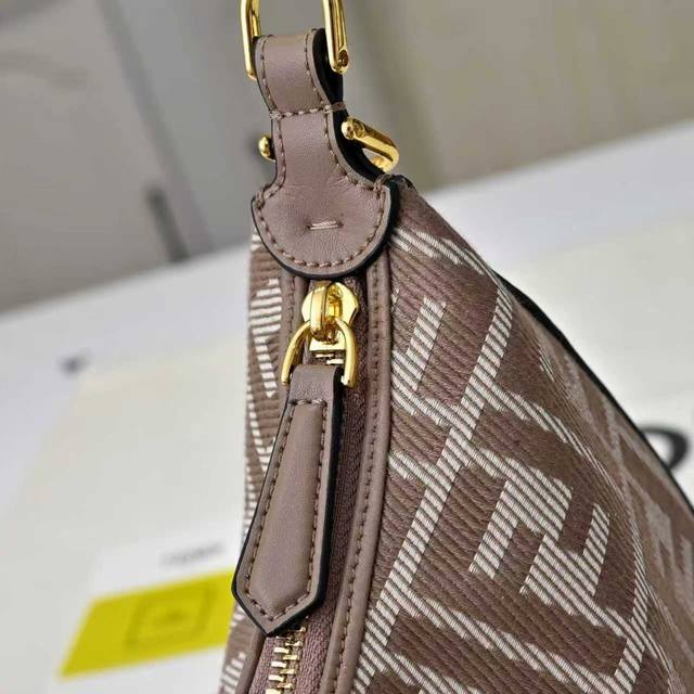 20 Size with box, model 1009. Comes with an adjustable long shoulder strap, chain 30cm, size 20cm. This Fend1 Praphy underarm bag features a crescent shape and the classic large metal [Fend1] logo at the bottom. The bag's silhouette hugs the body's lines, and it looks incredibly stylish when worn under the arm