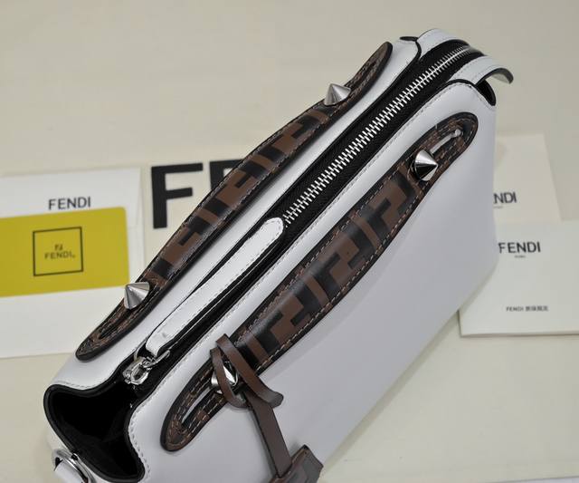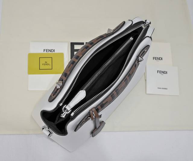 Add chain and 40 Fend By The Way Regular Boston pillow bag. Made of imported calfskin with palladium-plated metal trim, featuring a zip closure, Ff embossed double handles and charms, an interior double pocket divided into two compartments, and an additional pocket. The shoulder strap is adjustable and detachable. Size: 28*12*17. Style number: F8876 DDD