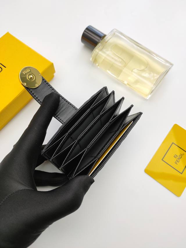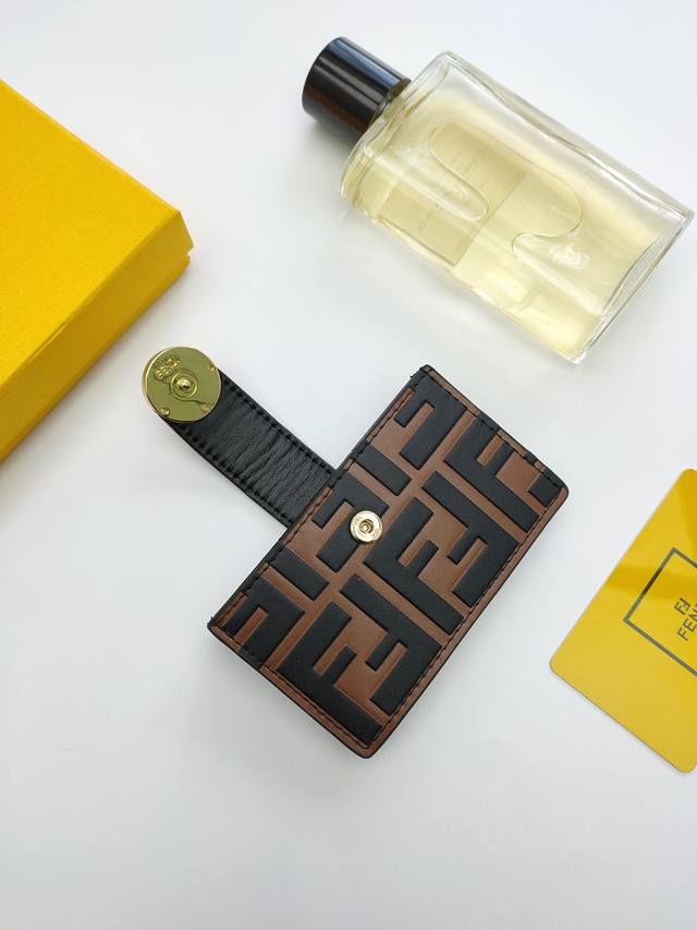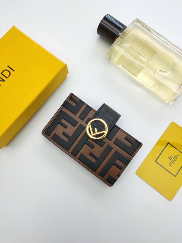 Fendi F Is Fendi flat card holder with a middle compartment and five card slots decorated with Ff embossing and hand-painted patterns. Style No.: 0021# Size: 10.5*6*2.5Cm DDD