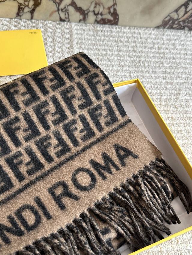 Original Fendi scarf with box. Size: 35cm. This winter's favorite is caramel-colored cashmere scarf with a soft feel and excellent warmth. Very stylish. It's genuine.