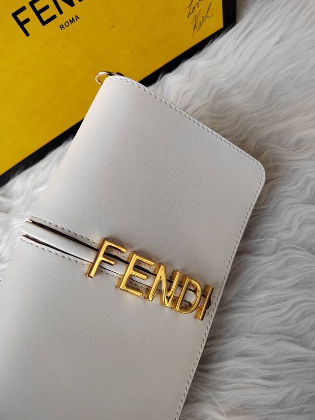 Style No. 8Bs076 White, Compact Fendlography Wallet with Flap, Eight Card Slots and Zipper Pocket, Size 21.5Cm-11Cm-4.5Cm