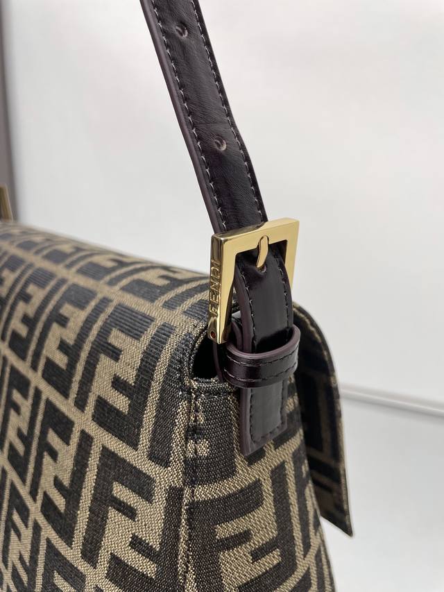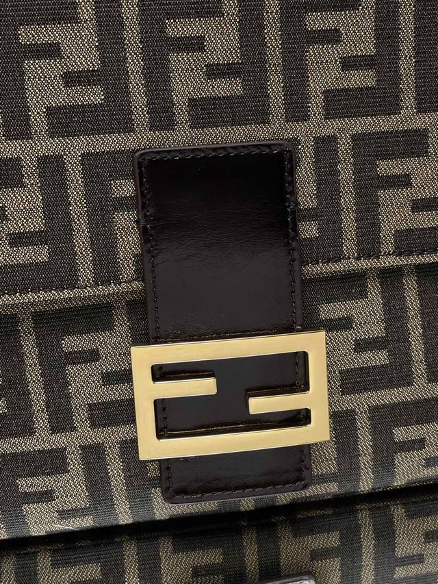 Authentic Large Gold Buckle Baguette Bag, New Vintage Fendi Monogram Brown Oil-W