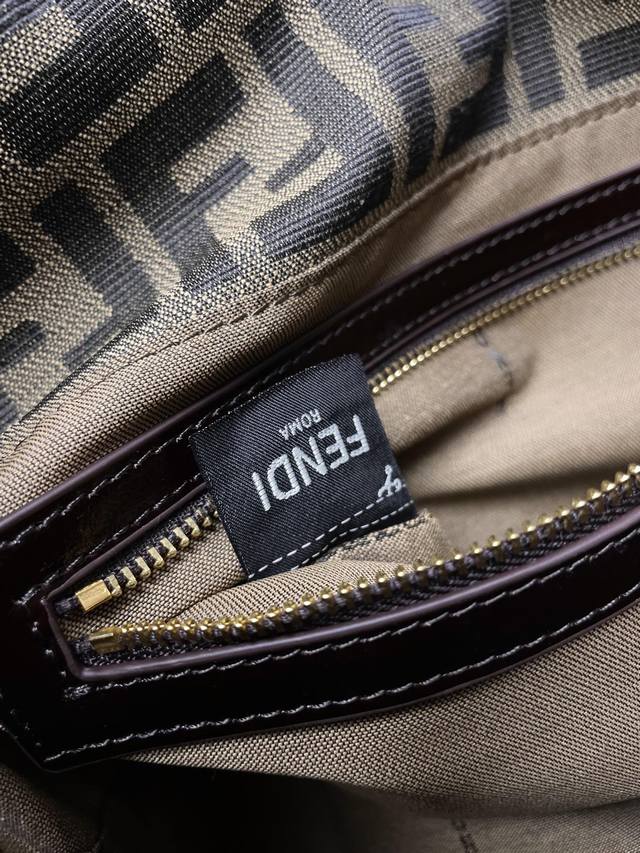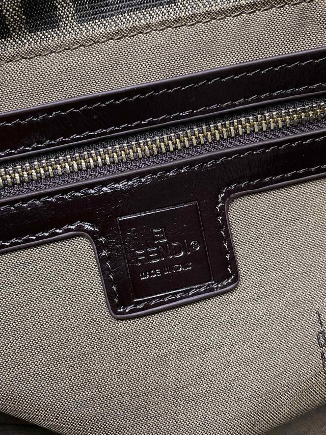 / Authentic Large Gold Buckle Baguette Bag, New Vintage Fendi Monogram Brown Oil-W