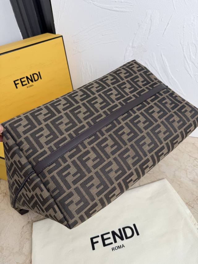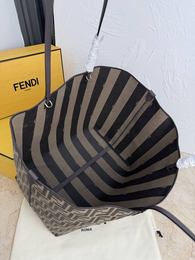 features a double-sided design in jacquard fabric, one side with a brown Pequin stripe pattern and the other with the signature tobacco brown Ff jacquard. The
