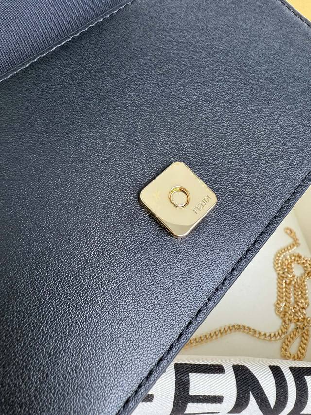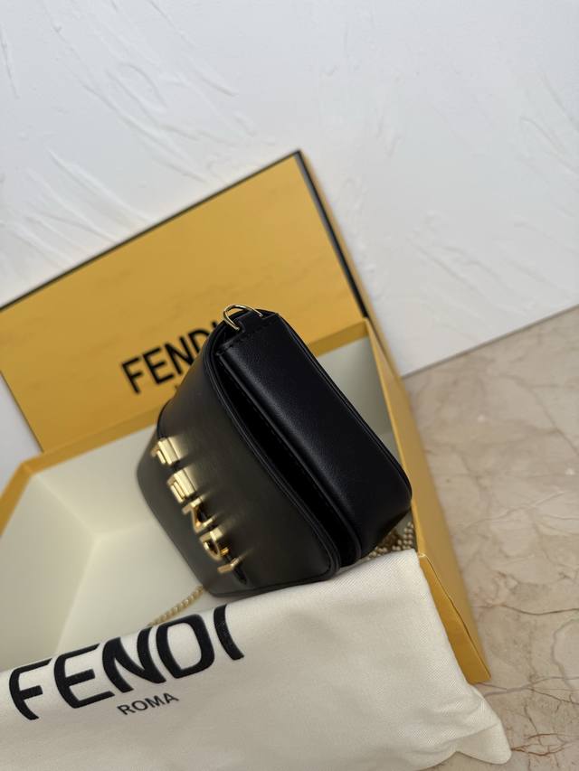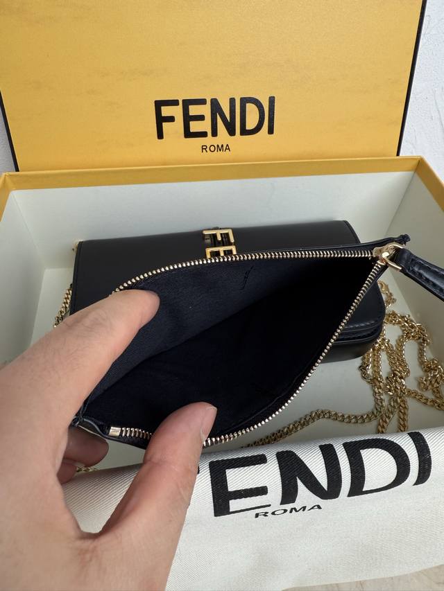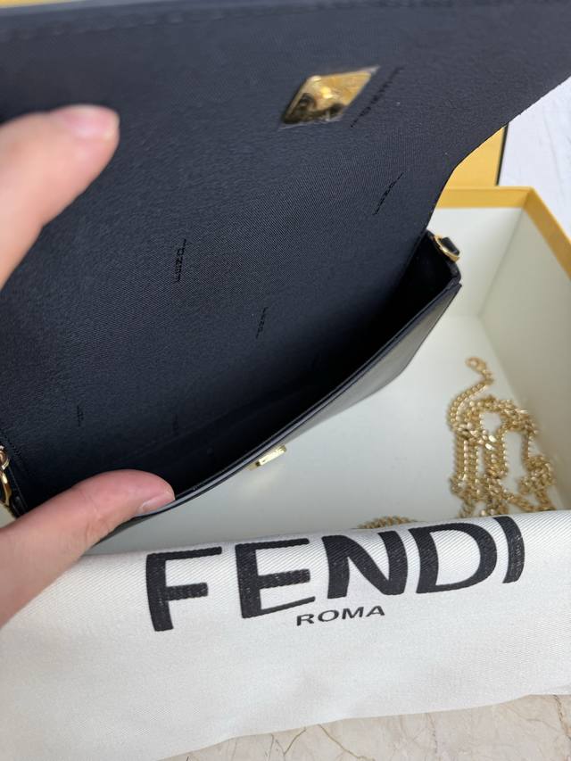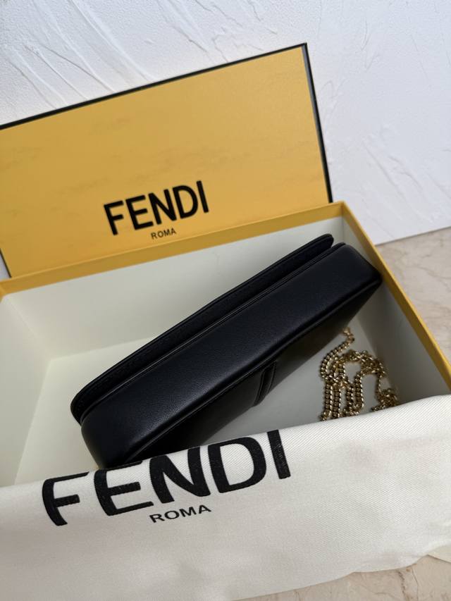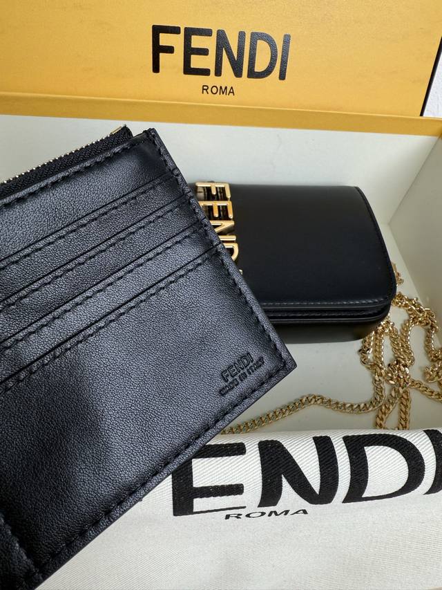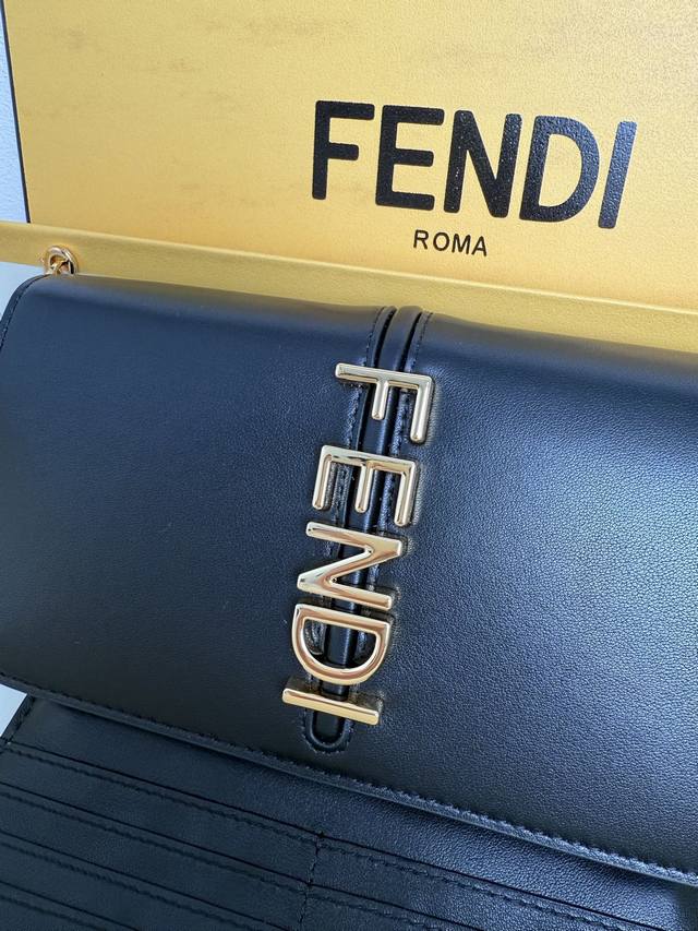 new black Fendi Graphy 2-in-1 chain bag, classic monogram with metal logo, simple yet stylish, can be worn crossbody or carried by hand, includes a small card pocket, perfect size 22X5X11Cm (