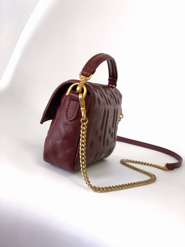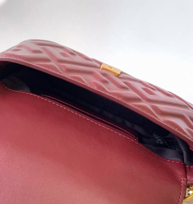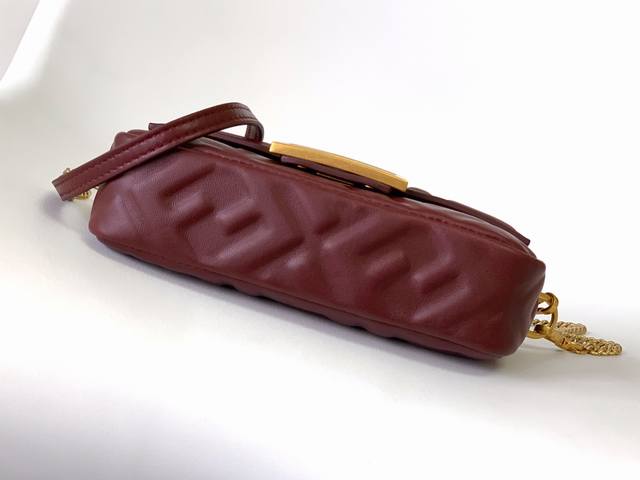 Fend Baguette Small Crossbody Bag is made of imported 3D textured lambskin leather with a full Ff pattern, gold-tone vintage metal hardware, a flap design with Ff magnetic closure, and comes with an adjustable and detachable chain strap and leather wrist strap. Small size: 19*3*11 DDD Style No.: 212 DDD