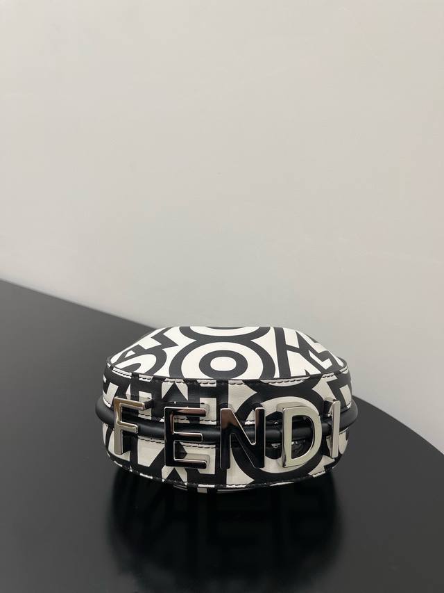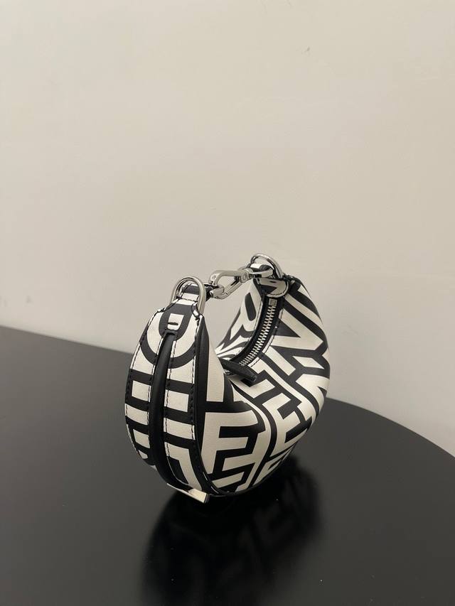 Fendi X Marc Jacobs collaboration. Crescent Moon Ipraphy Fendi underarm bag, featuring a crescent moon shape and a classic silver metal logo embellished on the base. The bag's silhouette perfectly fits the body's curves, creating a stylish look when worn under the arm. It's a true walking inspiration! Comes with full packaging. Model 3906# Dimensions: 16.5 x 14 x 5 cm