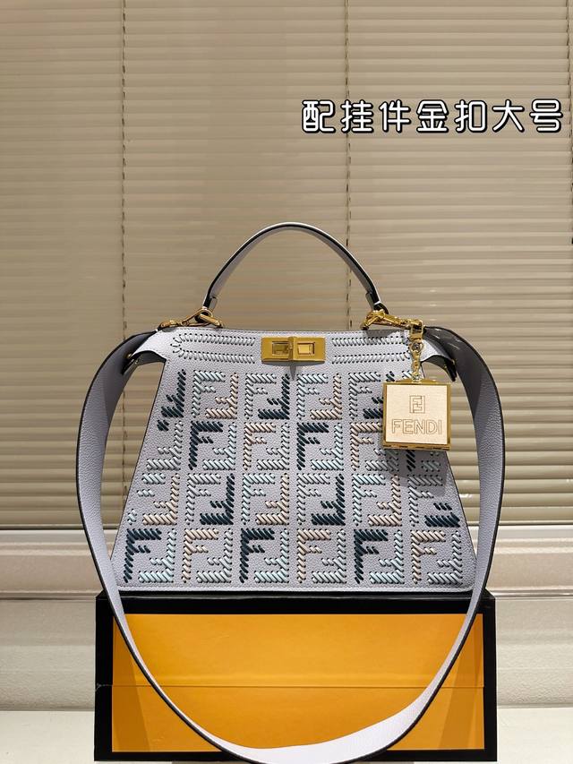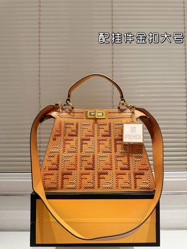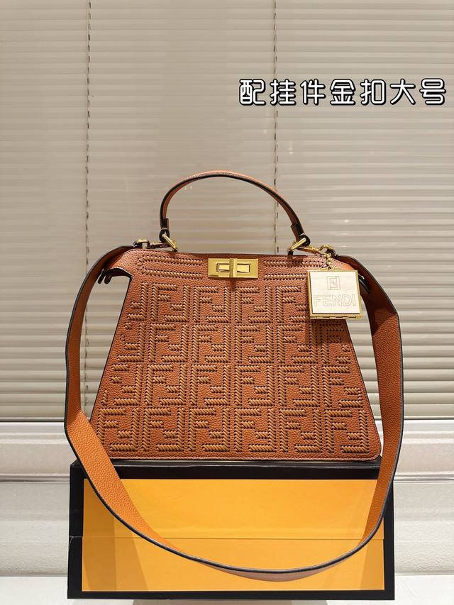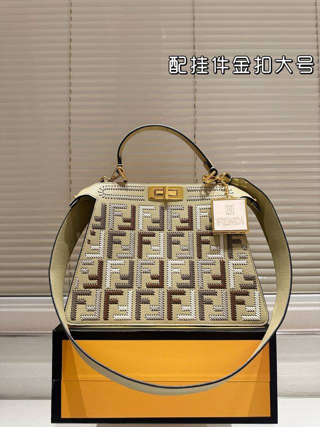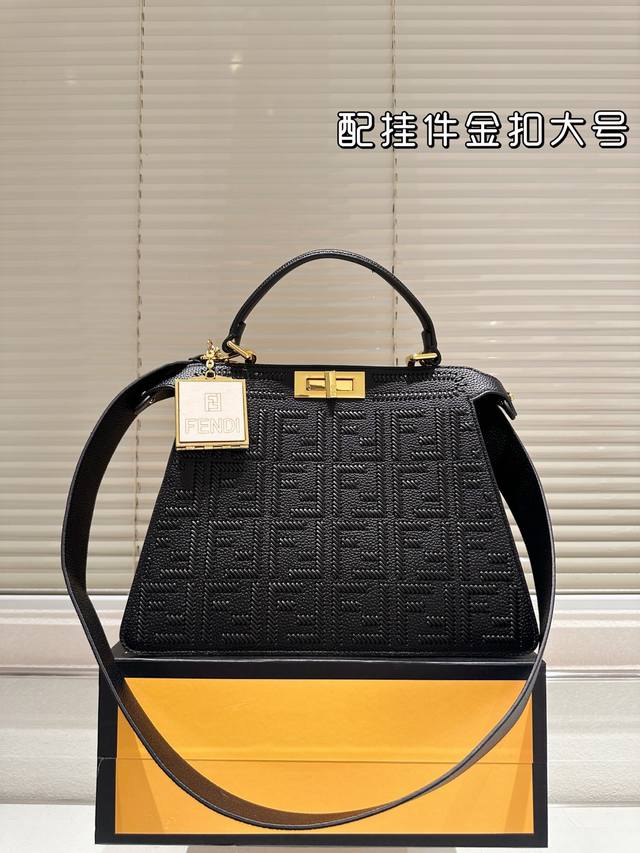 Fendi Little Monster Fendi 88th Anniversary Fendi handbag, smooth texture, and exposed stitching. Both compartments open with the classic Peekaboo turn lock. Rigid divider with one zippered pocket. Single handle, palladium-finished metal hardware, engraved with the Fendi logo. Dimensions 33.24cm