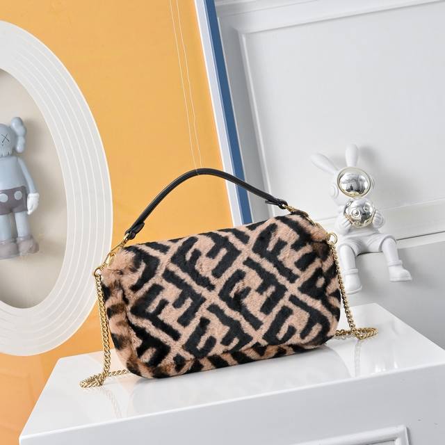 Mao Mao New Ddd F brand early spring new Baguette series is about to ship. Love at first sight, forever. It Girl's favorite. Three-dimensional textured leather, embellished with a sparkling Ff gold magnetic clasp, understated yet playful and sexy. Flap crossbody/handbag, cowhide embossed with the F design all over, with a detachable chain leather shoulder strap and handle. Size: 20 DDD