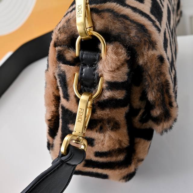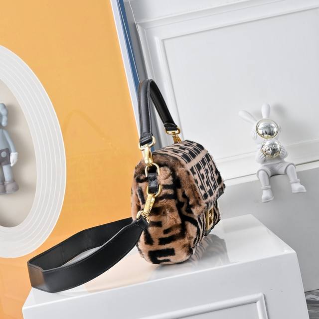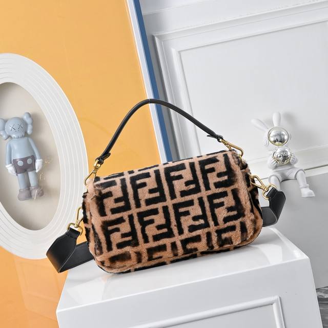 New Ddd F brand's 19 early spring new Baguette series is about to ship. Love at first sight, a must-have for It Girls. Three-dimensional textured leather, adorned with a shimmering Ff gold magnetic clasp, understated yet playful and sexy. Flap crossbody/handbag, embossed with an all-over F design on cowhide, with a detachable chain leather shoulder strap and handle. Dimensions: 26.5 x 15 cm. DDD