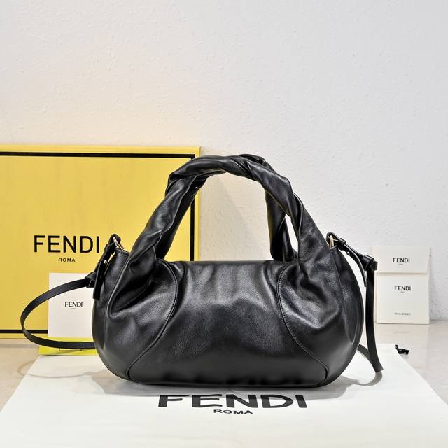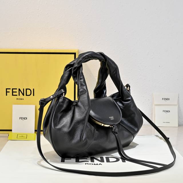 Shipping, actual shot of model 001, Fend! The Spy small handbag has a unique design and is a modern reinterpretation of the famous Fendi It handbag that debuted at the 2005 Spring/Summer fashion show. The name of the handbag is inspired by its functions, which include a secret pocket hidden in the flap that can be opened and closed with a small button. The silhouette is embellished with a distinctive twist handle, highlighting the exquisite craftsmanship.