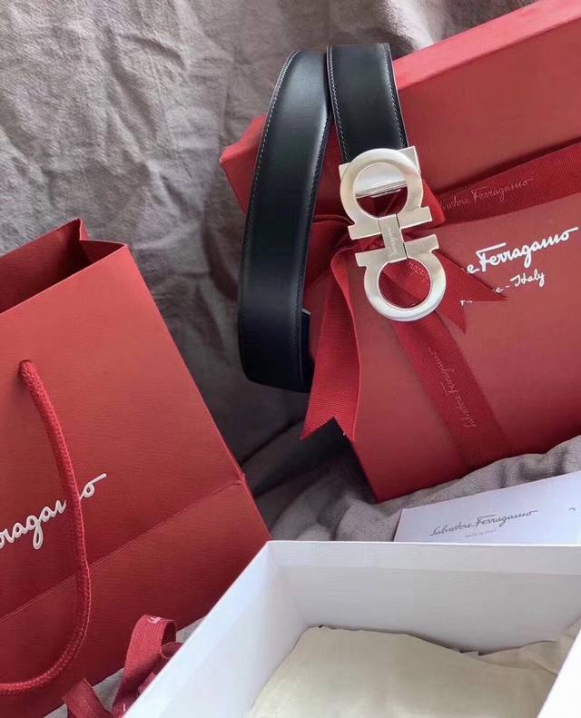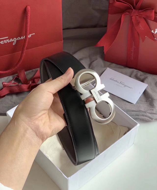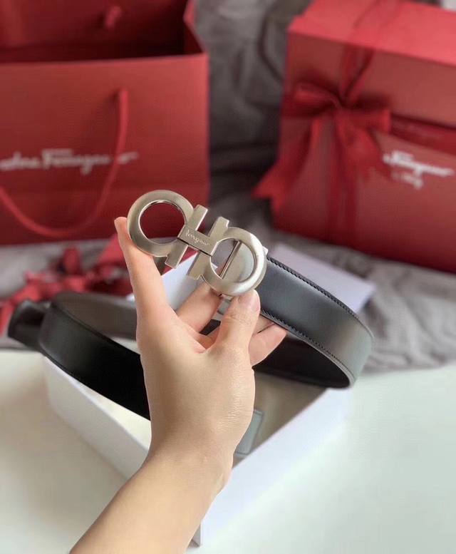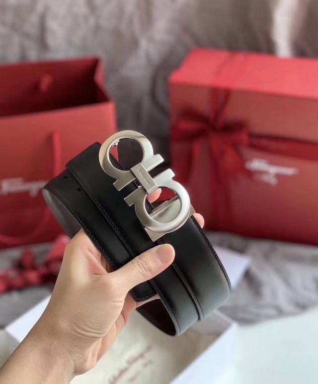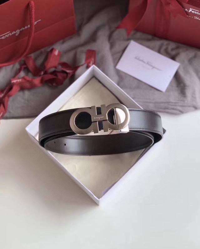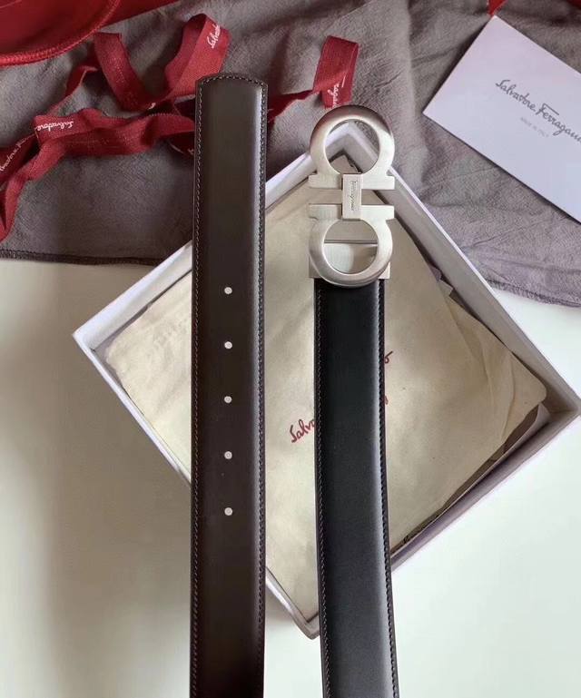 Ferragamo combines modern design with exquisite craftsmanship. Practicality and style are equally important. Double-sided, one side is black and the other side is brown. 35mm. Soft and comfortable to the touch. With the latest original vacuum-plated hardware buckle