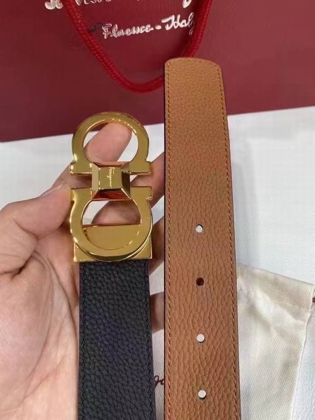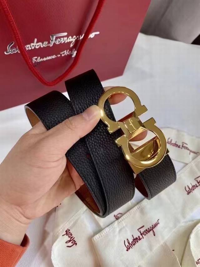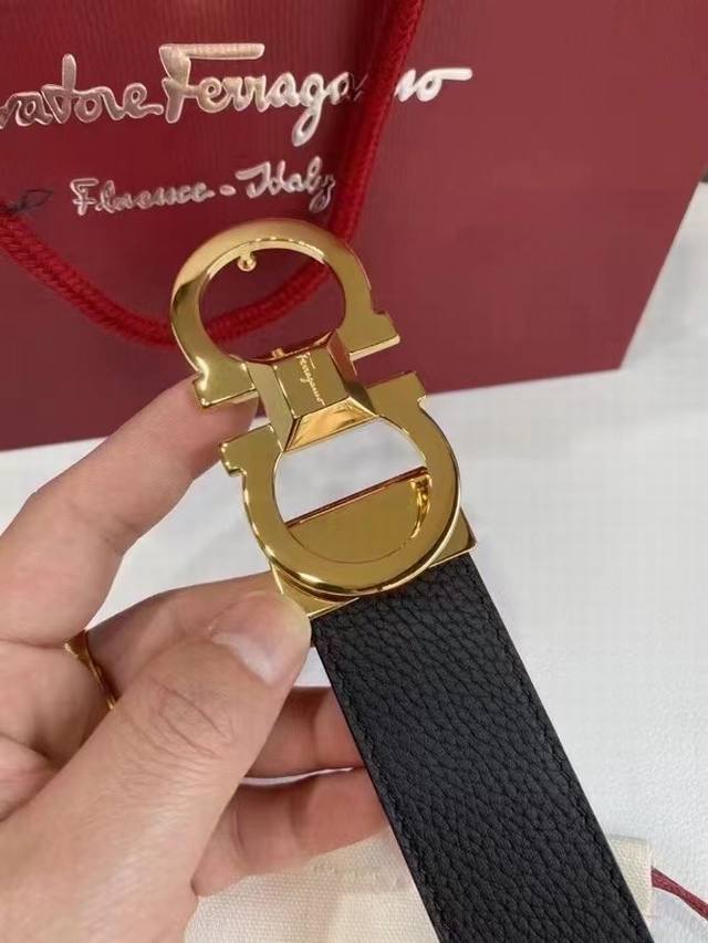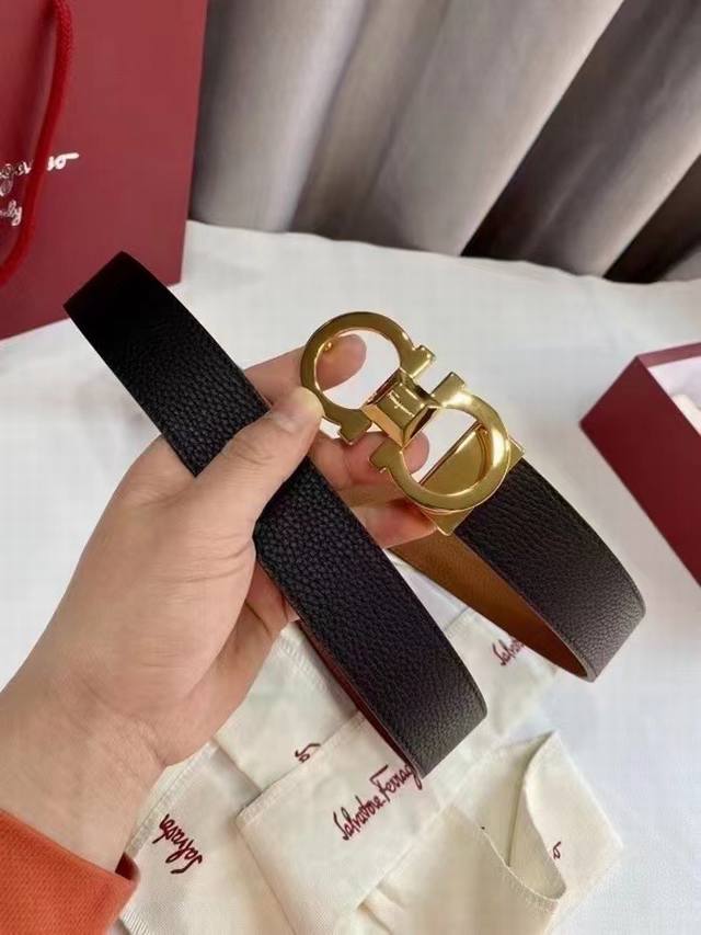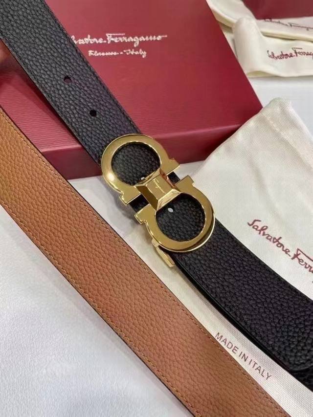 Gift This stylish double-sided belt from Salvatore Ferragamo features a two-tone design. The soft cowhide is hand-finished, with one side available in black and the other in ochre for an exceptionally supple feel. The Gancini buckle features contrasting details for a sleek, modern look. Width: 3.5cm