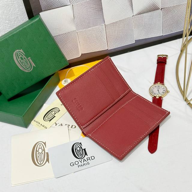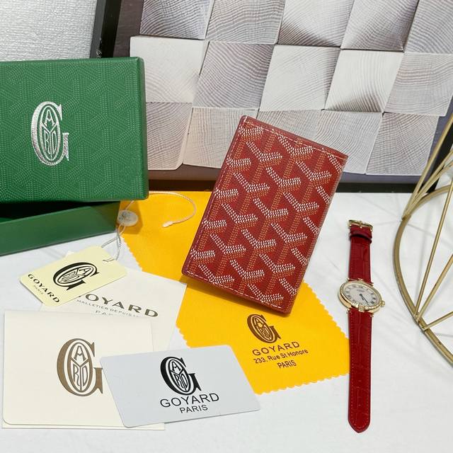 Goya Saint-Pierre Card Holder is fully functional, featuring a large banknote pocket that can hold cards, ID cards, and bills simultaneously. Its compact design fits perfectly in a jacket or trouser pocket. Style Number: 98026 Color: Red Dimensions: 11cm x 1.5cm x 7.5cm