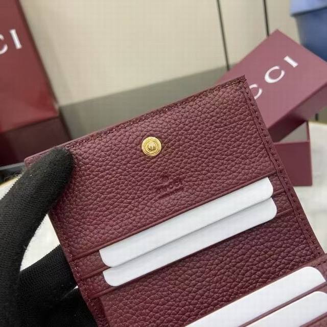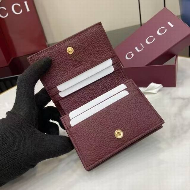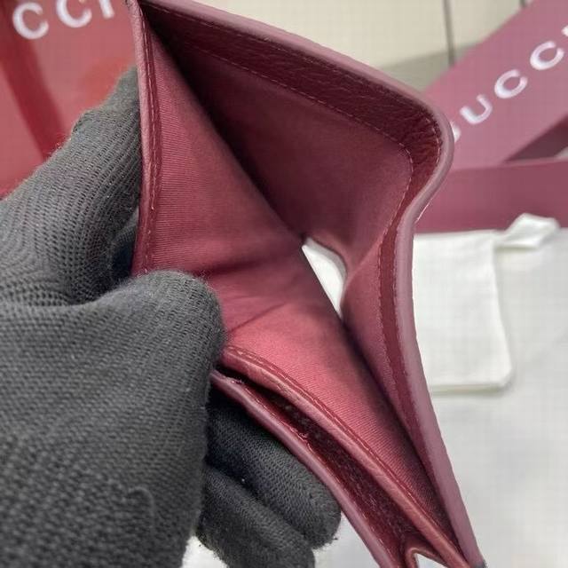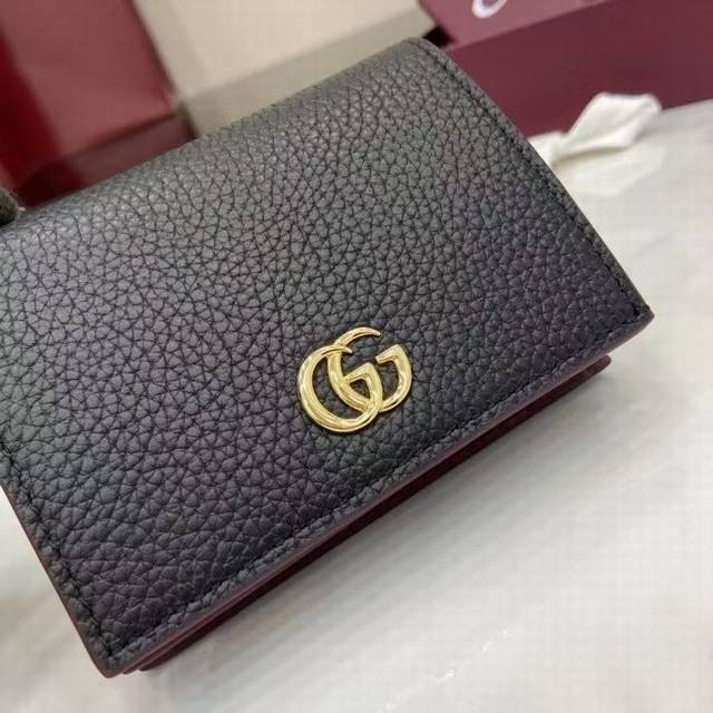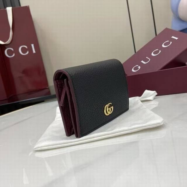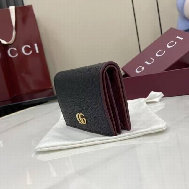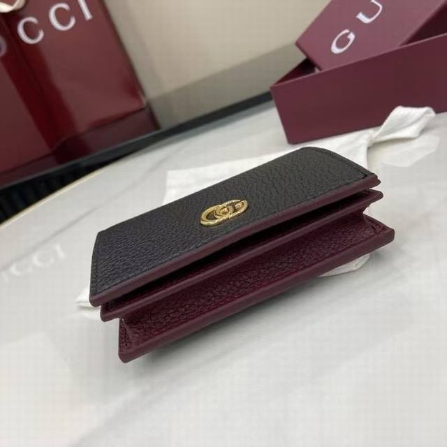 A premium new arrival, this Gg Marmont small wallet features a contrasting interior for a striking new twist. The structured silhouette is complemented by the signature gold-tone-effect Double G hardware.