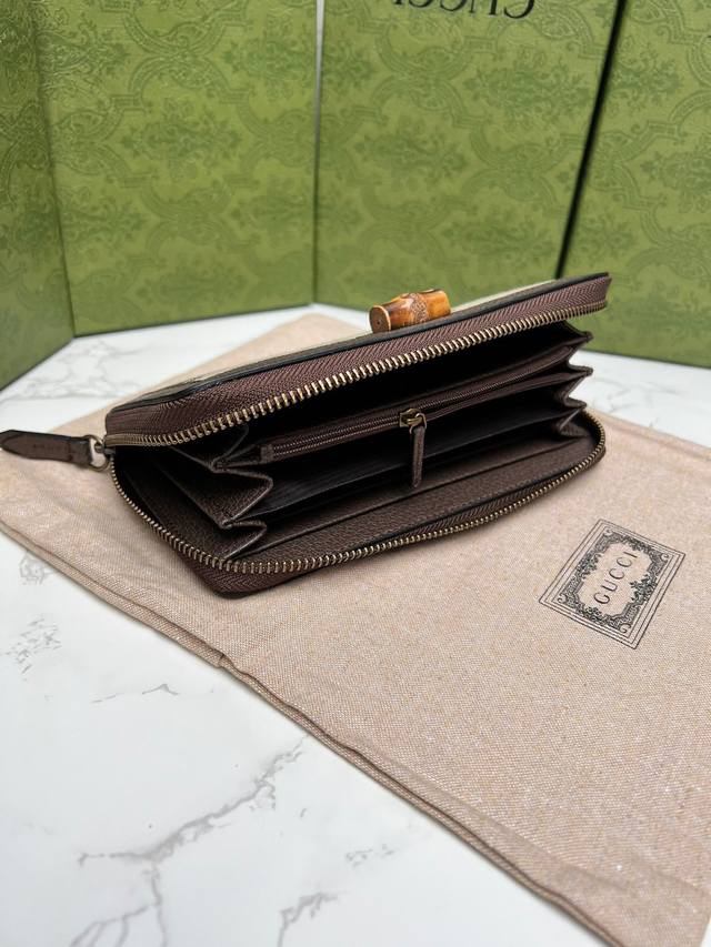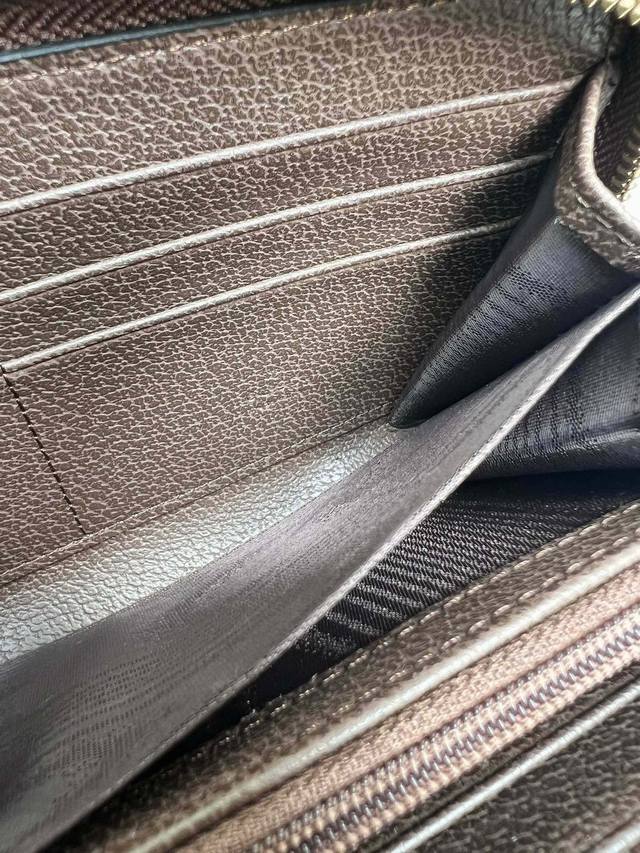 Color: Brown Size: 20X10 Ophidia Series Gg Zip Around Wallet. The Gg logo, introduced in the 1970s, evolved from the early Gucci diamond pattern that began in the 1930s. This zip around wallet combines the iconic pattern with striped ribbon, a classic pairing that pays homage to the roots of the Gucci brand. Made of brown and ebony Gg Supreme canvas with brown leather trim, gold-tone Double G hardware, 12 card slots, 3 bill compartments, a zippered coin pocket, and a zippered closure.
